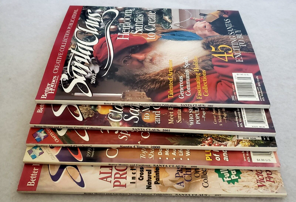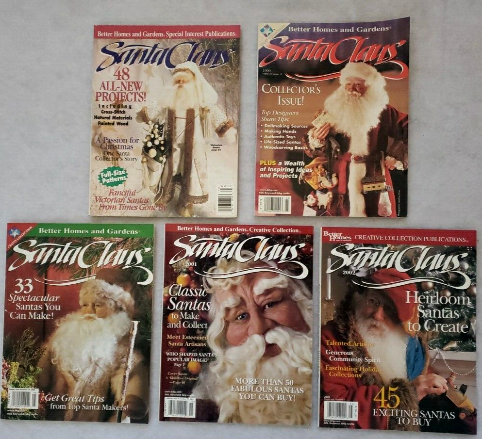 Lot of 5 - Better Homes & Gardens Santa Claus Magazine - 1997 to 2002 This lot includes annual publications for 1997, 1999, 2000, 2001 and 2002. Very lightly used and clean. Unable to ship by Media Mail due to magazines having advertisements.