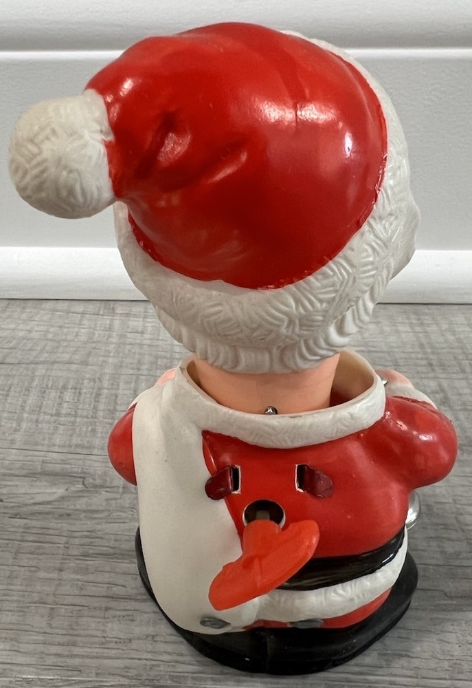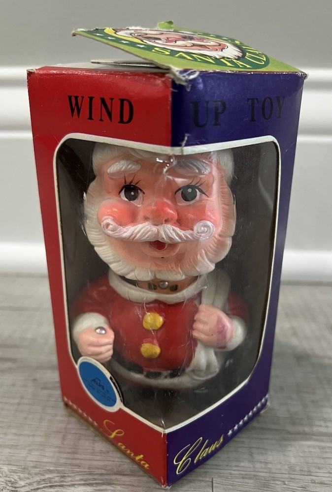 This vintage wind-up toy from Alps, Japan is a charming addition to any Christmas collection. Featuring Santa Claus ringing a bell, this toy is perfect for festive decoration or as a gift for loved ones. With its original box, this toy is a rare find for collectors. Checkout my other wind ups for sale