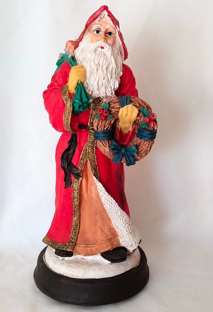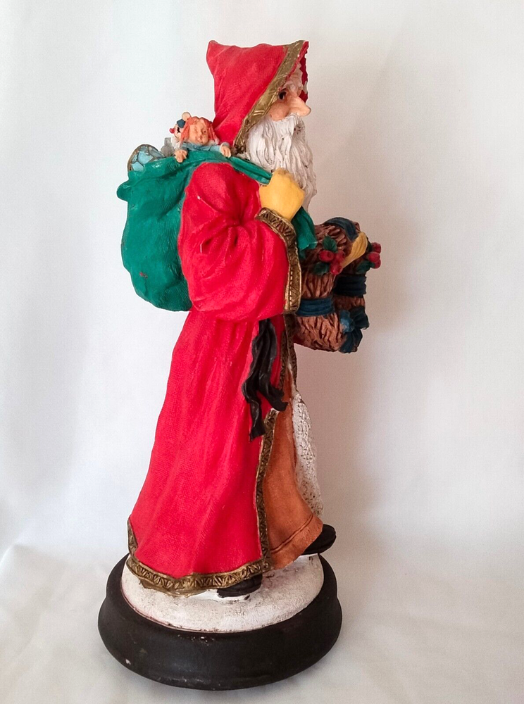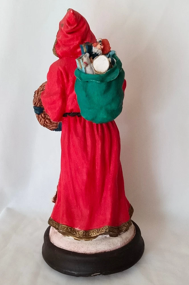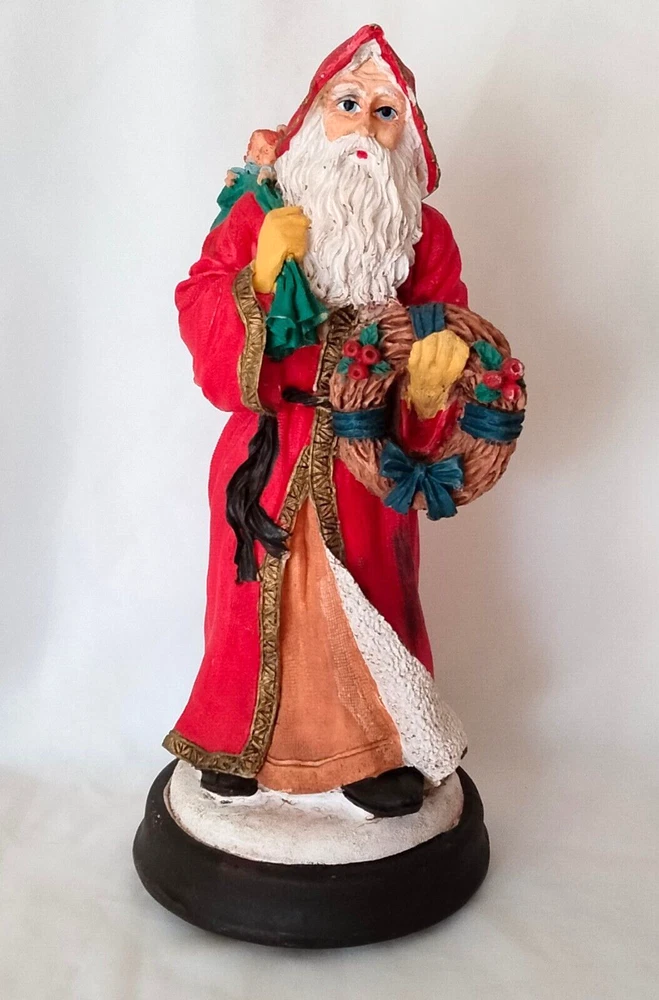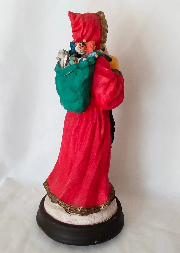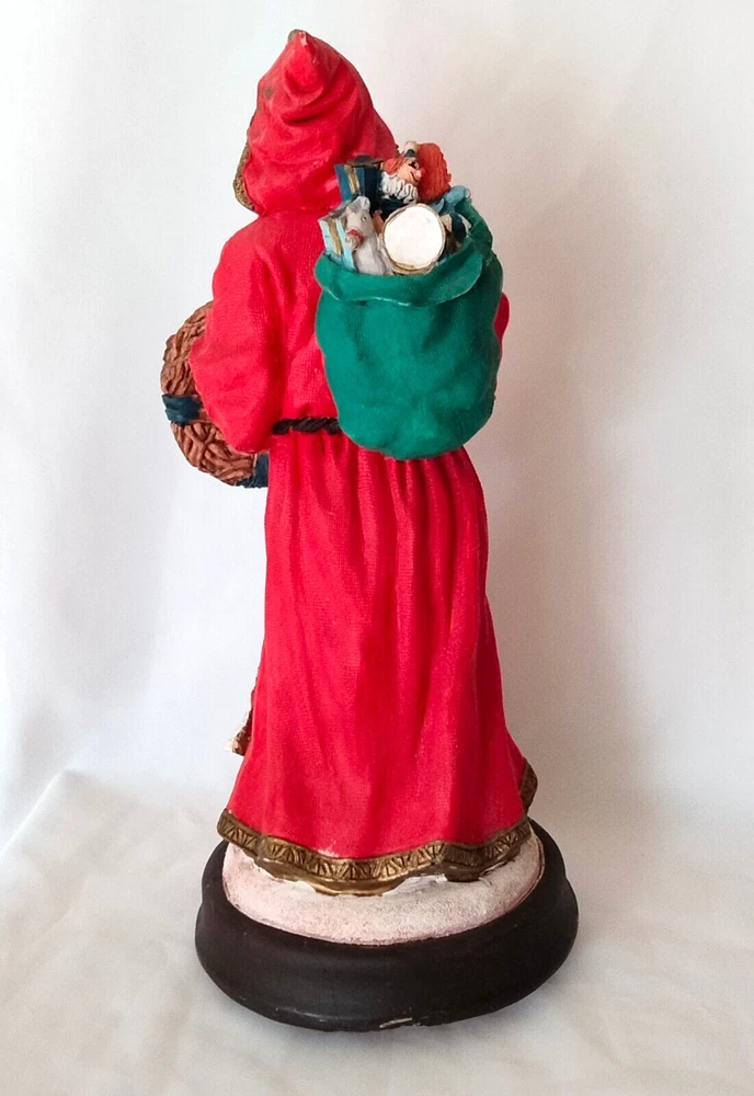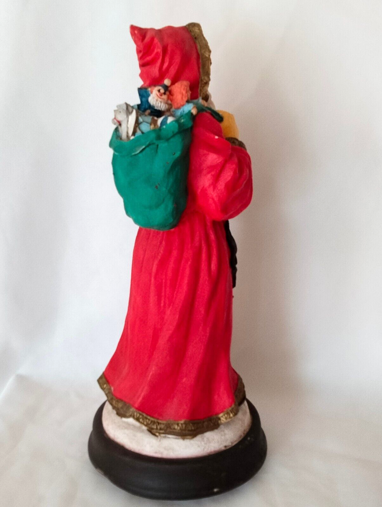 Elevate your festive decor with the vintage charm of the Albert E. Santa Clause figurine. Standing at an impressive 12 inches tall, this ceramic and porcelain piece brings a touch of classic Christmas joy to any space. The whimsical wind-up music feature adds a delightful auditory experience, enhancing the visual delight of this musical Santa.Crafted with meticulous attention to detail, the figurine is a striking representation of the holiday spirit, adorned in a rich palette of red, gold, and white. Its unique design and tall stature make it an ideal centerpiece or a treasured addition to a collector's array of holiday memorabilia.