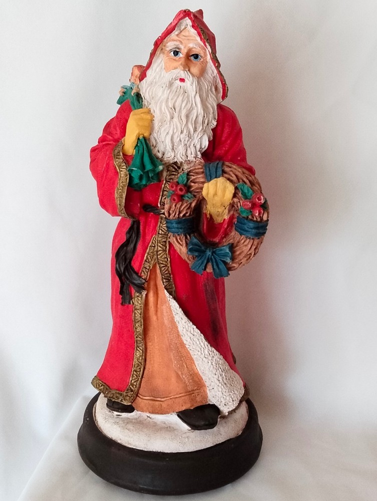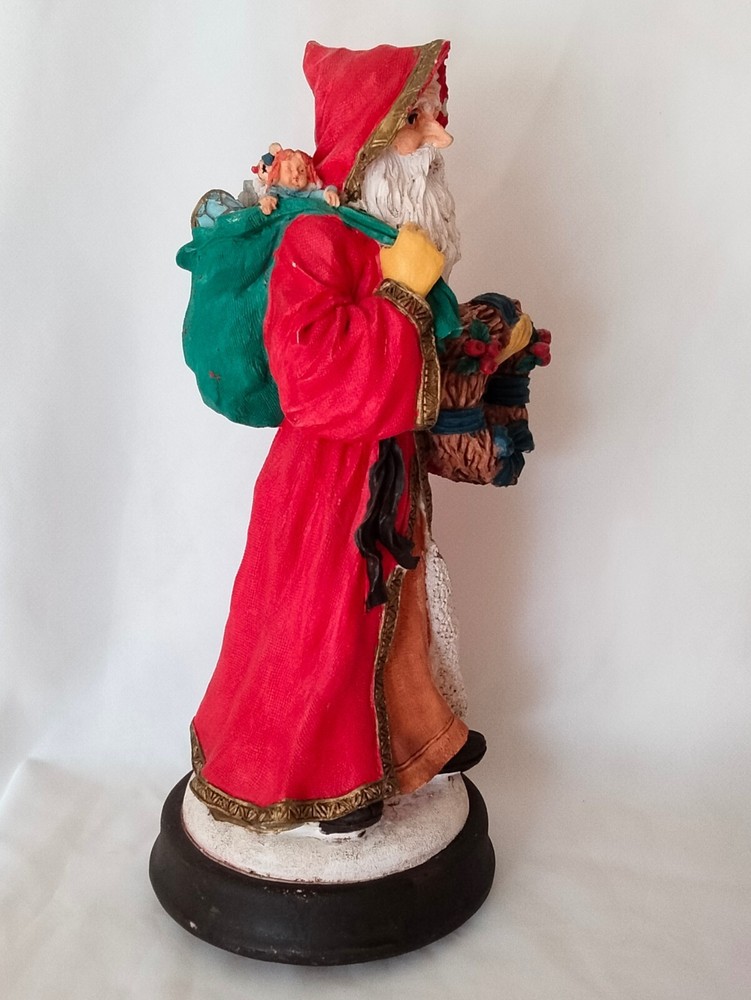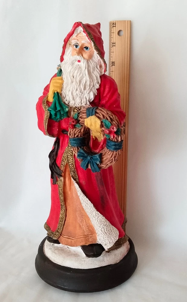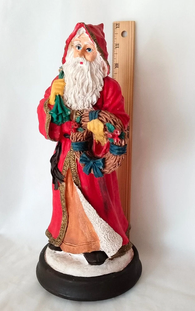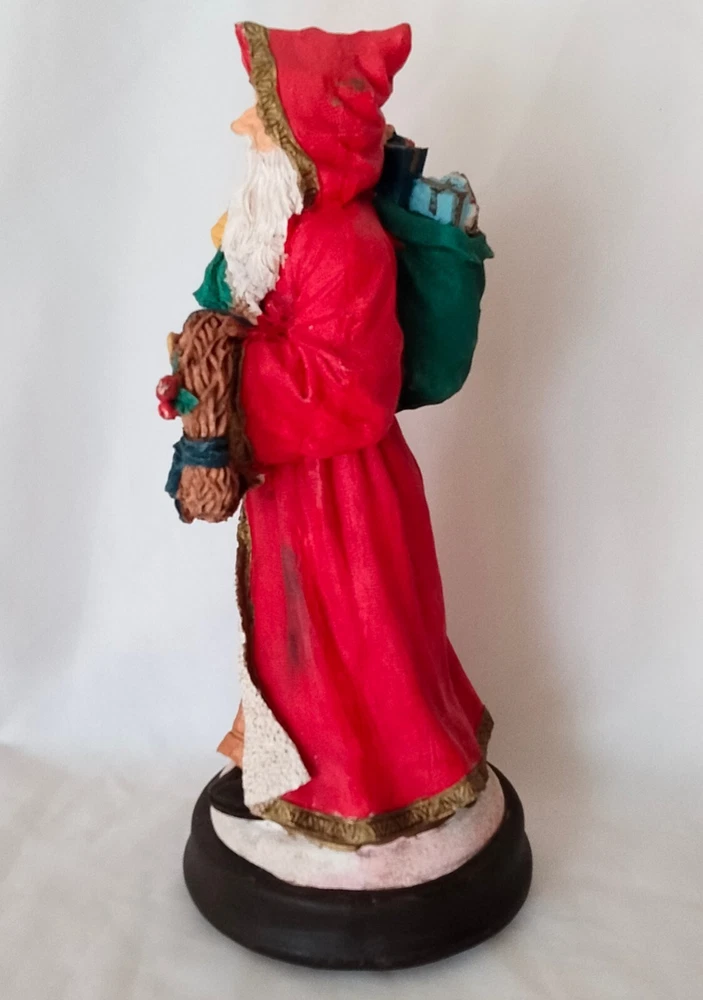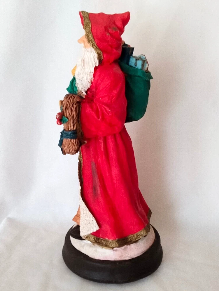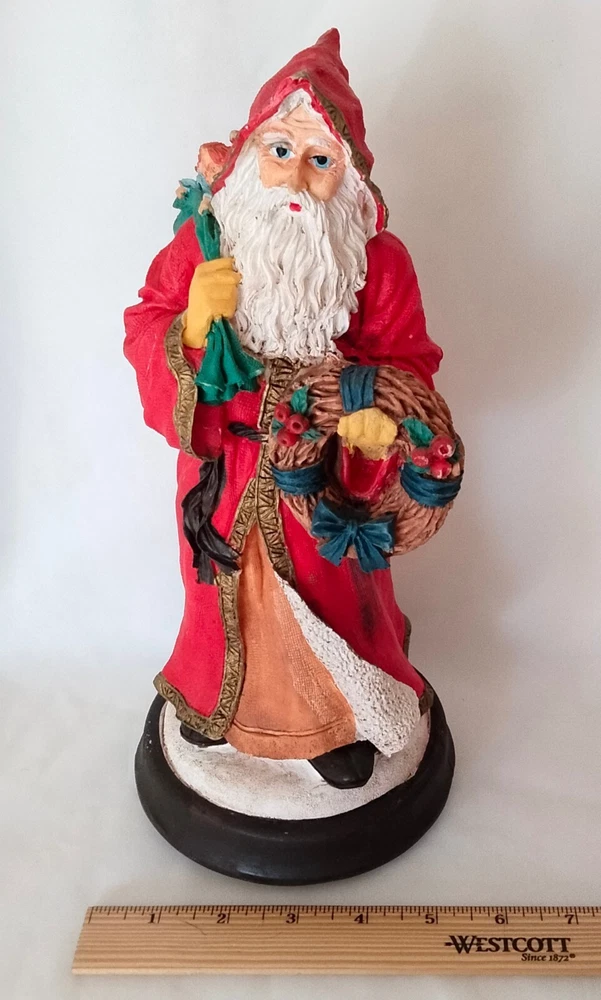 Elevate your festive decor with the vintage charm of the Albert E. Santa Clause figurine. Standing at an impressive 12 inches tall, this ceramic and porcelain piece brings a touch of classic Christmas joy to any space. The whimsical wind-up music feature adds a delightful auditory experience, enhancing the visual delight of this musical Santa.Crafted with meticulous attention to detail, the figurine is a striking representation of the holiday spirit, adorned in a rich palette of red, gold, and white. Its unique design and tall stature make it an ideal centerpiece or a treasured addition to a collector's array of holiday memorabilia.