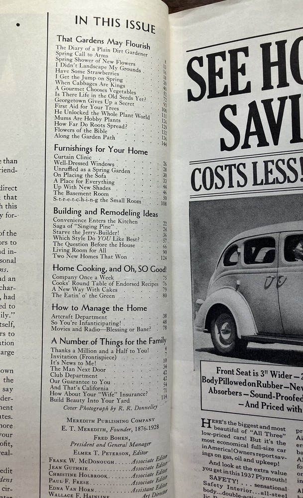 Scarce BETTER HOMES AND GARDENS - March 1937 144 pages. Covers intact. Minimal soiling/edgewear. Pages are tight and clean. Minimal soiling, no tears, no writing, no loose pages. ***Please view all photos carefully for detail … they are an important part of the description and message any questions prior to bidding. Thanks for looking!! * All sales are final so please know what you are buying. We do our best to provide accurate descriptions and photographs. We strive for excellence in our customer care but being human, we can make mistakes, so if there is a problem please notify us immediately so we can help to resolve any issue. **Please note that when you agree to purchase an item, you are agreeing to the stated shipping cost. Shipping costs continue to rise and we do our best to be accurate and sometimes have to guestimate, so if the shipping cost is a bit more than the actual cost to ship, please take into consideration the cost of packaging and the means it requires to get to the post office. We really do appreciate your kind understanding and extended grace ...