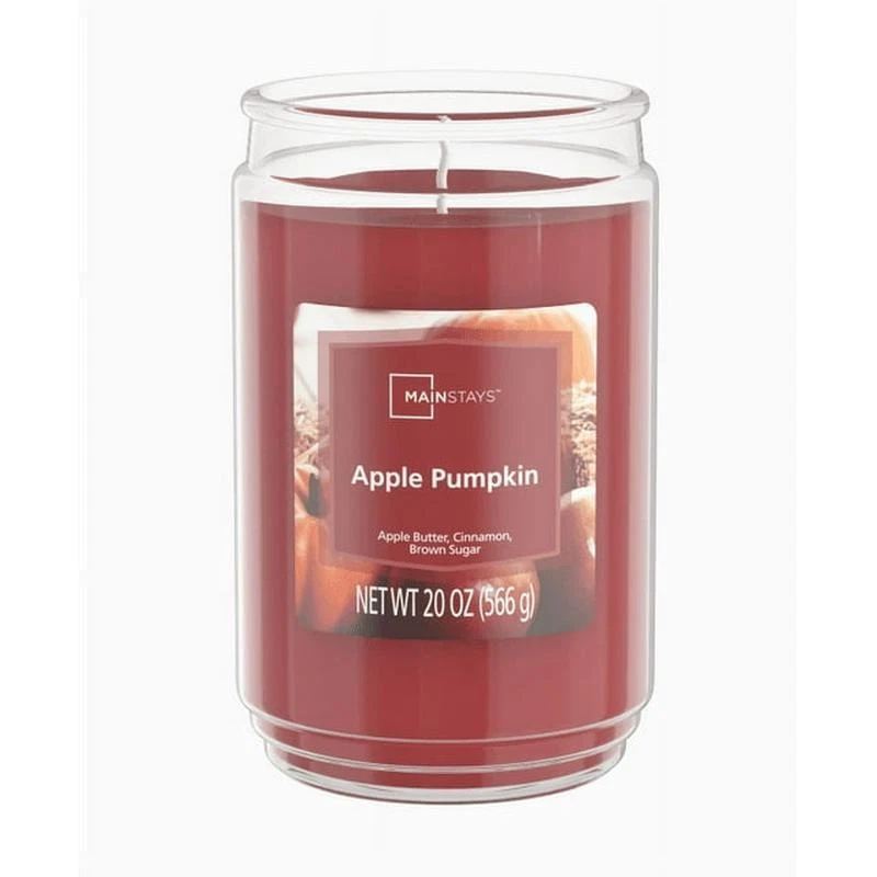 Introduce a soothing aroma into your living space with the Mainstays Apple Pumpkin Scented Single-Wick Jar Candle. Mainstays scented candles are highly fragranced and provide a clean and even burn that will fill your home with beautiful and enticing seasonal aromas. Place this candle in the kitchen, living room or dining room where you can enjoy it when entertaining guests or anytime you want to relax. Trim the wick periodically to promote even burning. Mainstays offers a wide selection of candle scents to explore and enjoy. Shop all of our Mainstays scents online and in-store. Treat yourself to the enticing scent of the Mainstays Apple Pumpkin Scented Single-Wick Jar Candle. Mainstays Apple Pumpkin Scented Single-Wick Large Glass Jar Candle, 20 oz Apple Pumpkin features Macintosh Apple whipped with warm apple butter and sweet cinnamon sugar are wrapped with maple syrup and brown sugar vanilla for a rich autumn sensation Complements virtually any room decor 20 oz. single-wick candle burns for approximately 100-120 hours Features a decorative beveled edge glass vessel Mainstays single-wick scented candles are highly fragranced, and provide a clean and even burn that will fill your home with beautiful and enticing aromas Our candles are made from high quality, non-toxic, clean-burning wax that is specifically developed to hold optimal fragrance loads Our Mainstays 20oz candle is available in a variety of scents