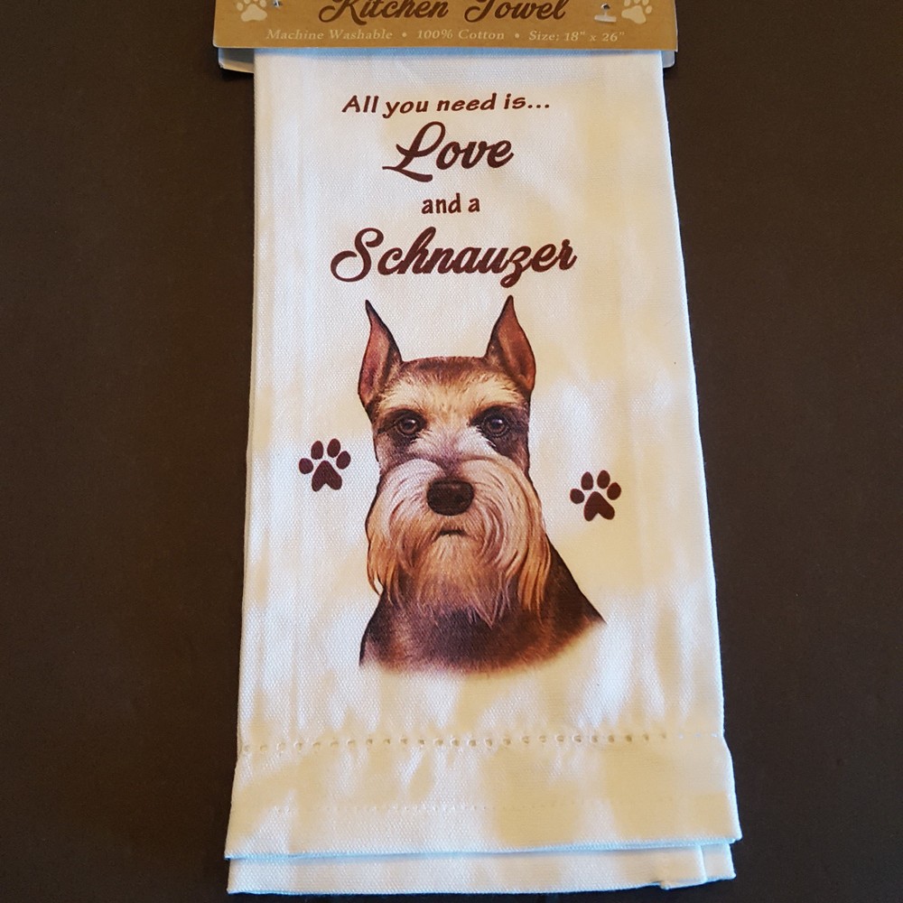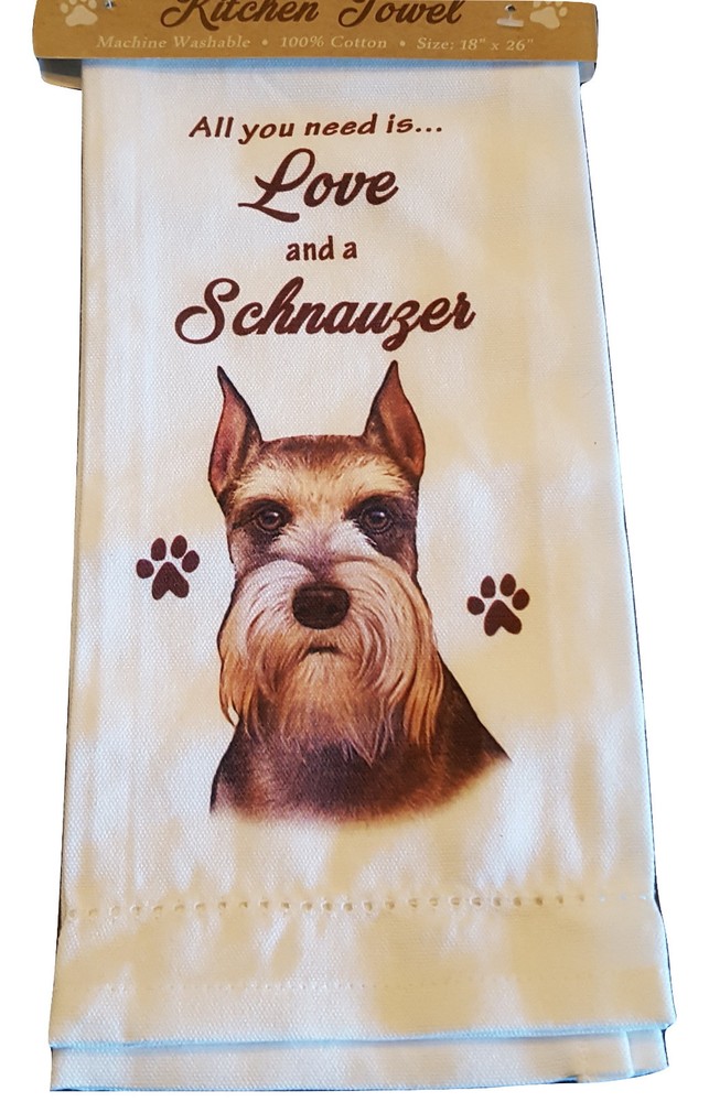 Schnauzer Kitchen Towel Dog Lovers Kitchen Towel 100% Cotton 18 x 26 Inches Great holiday gifts, hostess gifts, bridal shower gifts, teacher gifts or birthday gifts! Machine Washable Love Your Dog? This Towel Is A Must Have!