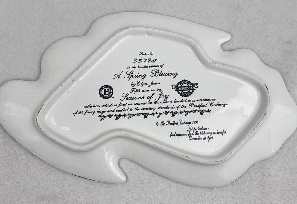 Seasons of Joy Plate Collection By Edgar Jerins- Bradford Exchange -1998 All in original opened boxes with COA's 5th Issue: "A Spring Blessing" - COA# 3579A - Approximately 6" W x 9" H 6th Issue: "A Warm Touch" - COA# 2823A- - 7" W x 8" H 8th Issue: Final Issue- "A Christmas Delight" - COA# 1892A - 7" W x 8" H