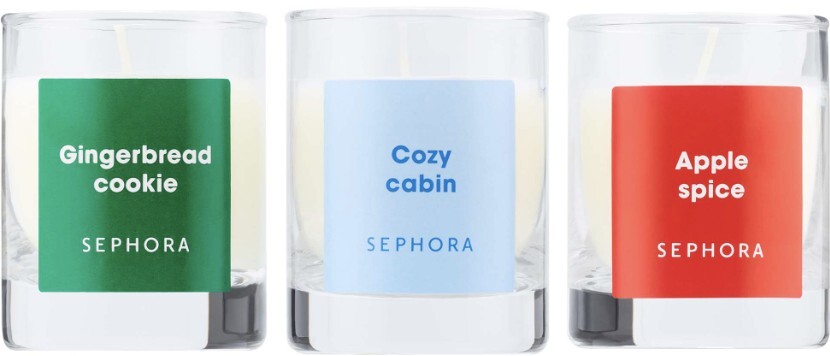 Sephora Cozy Vibes Candle 3pc Set Includes: Apple Spice, Cozy Cabin, and Gingerbread Cookie. 3 x 1.85oz. Small Candles Set....