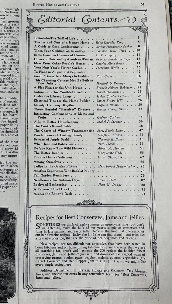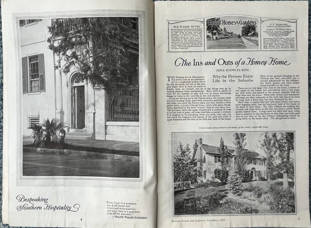 Nice example of the September 1927 Better Homes and Gardens magazine. Beautiful cover and interesting articles on landscaping, diseases of flowers, gardening, electrical tips, cooking, plot plans, needlework and beekeeping. See photos for condition. I will gladly answer question and combine shipments. I invite you to view my other magazine auctions.