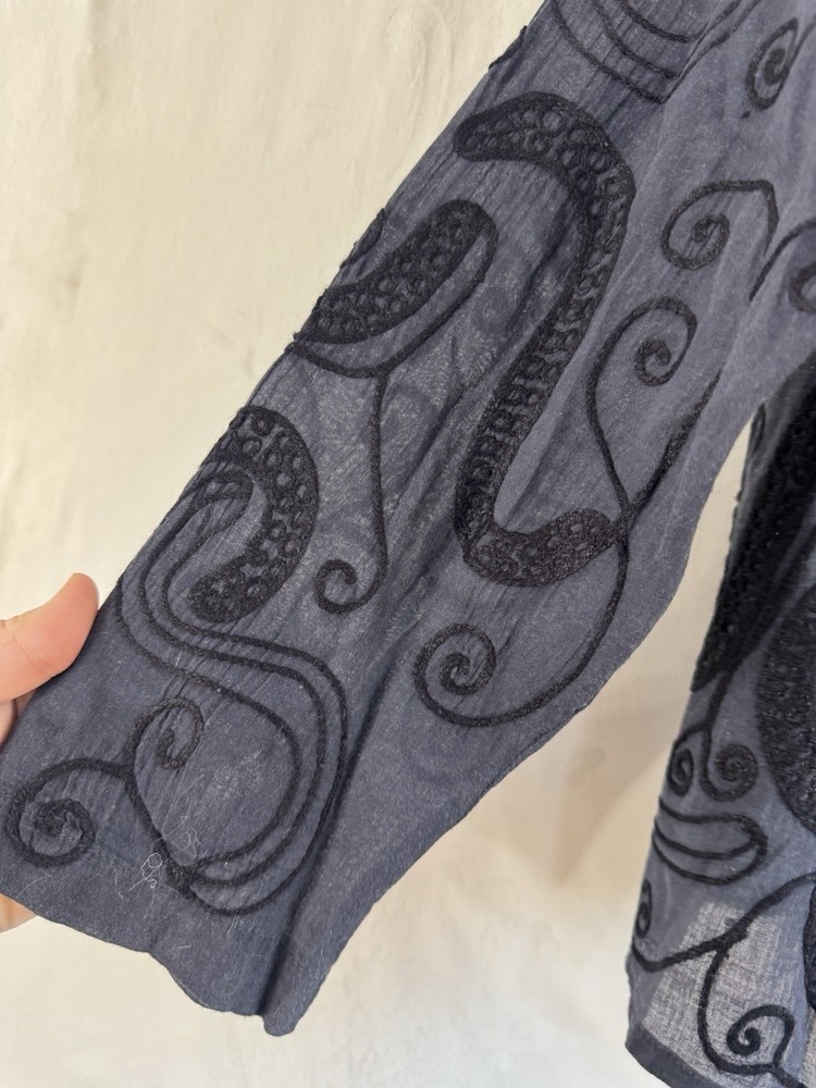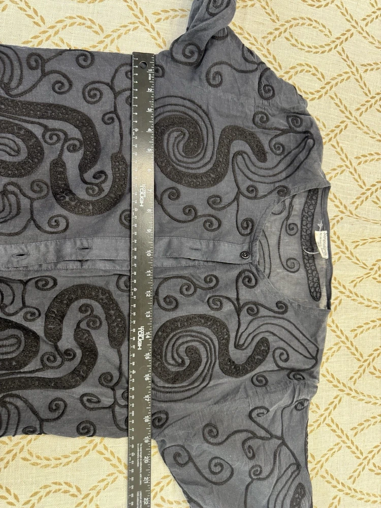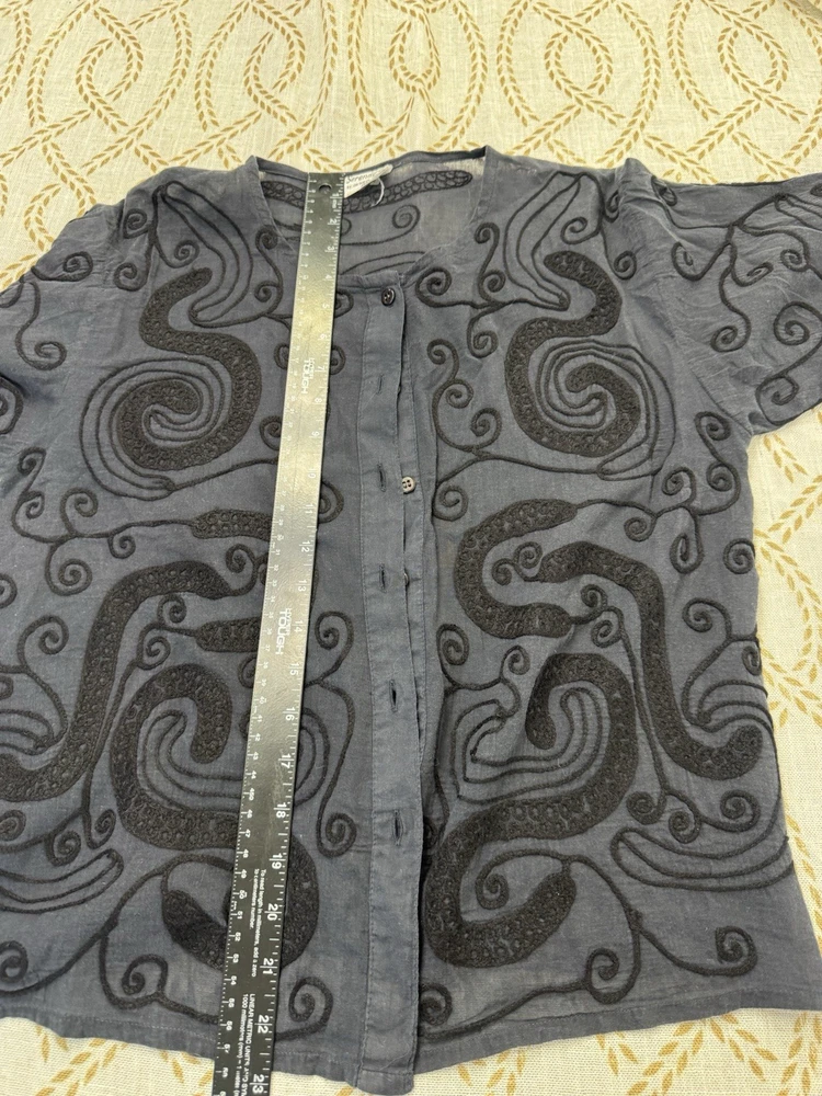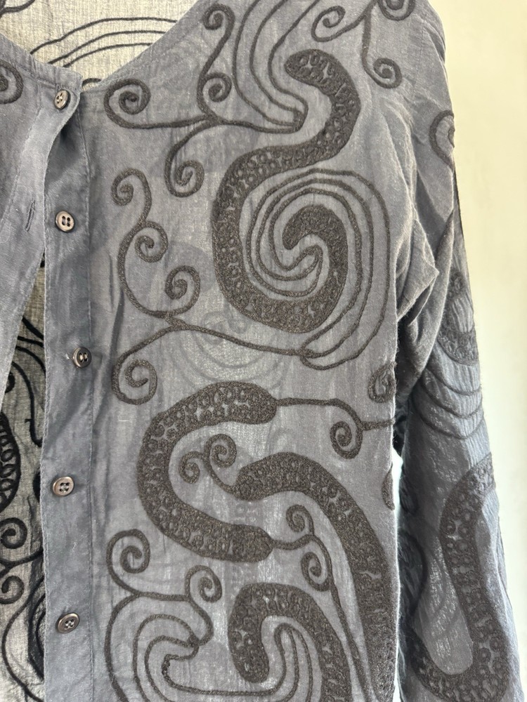 Serendipity by Jill Indrio Imports Medium Black Blouse Swirl Design 100% Cotton. Condition is Pre-owned - Excellent. Shipped with USPS Ground Advantage....