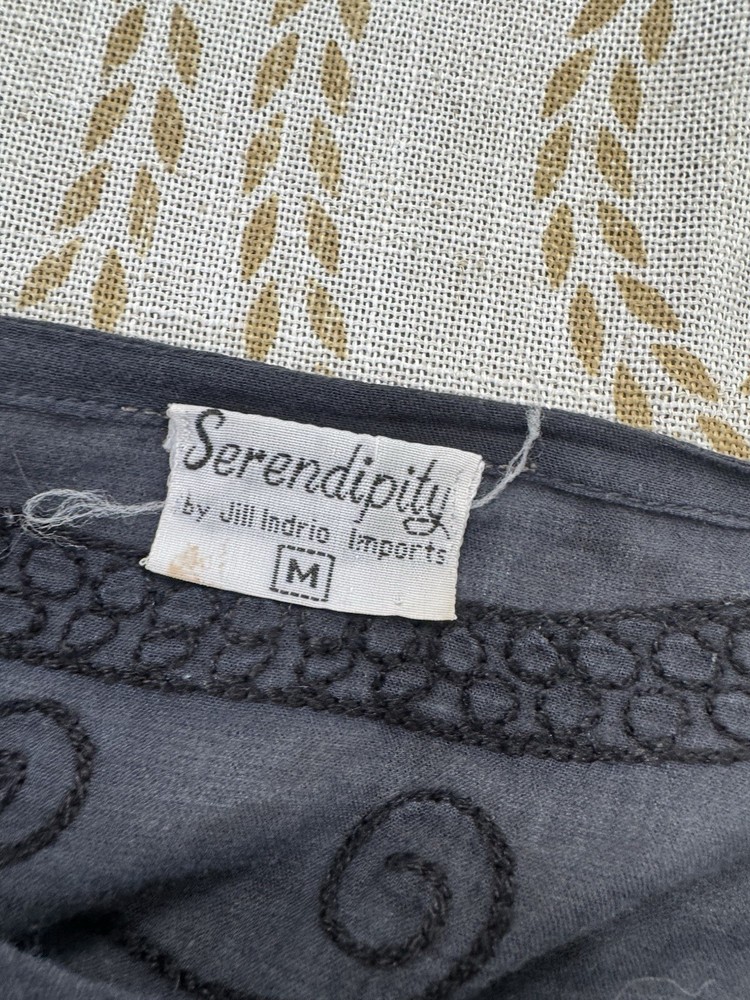 Serendipity by Jill Indrio Imports Medium Black Blouse Swirl Design 100% Cotton. Condition is Pre-owned - Excellent. Shipped with USPS Ground Advantage.
