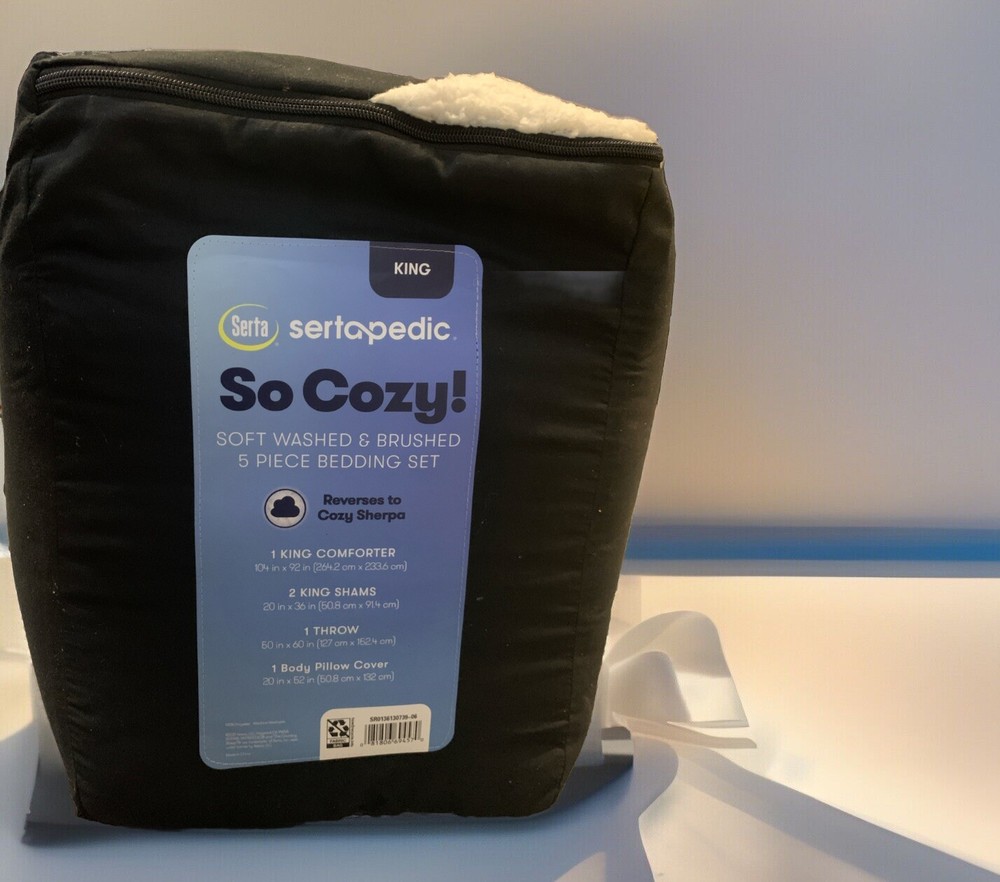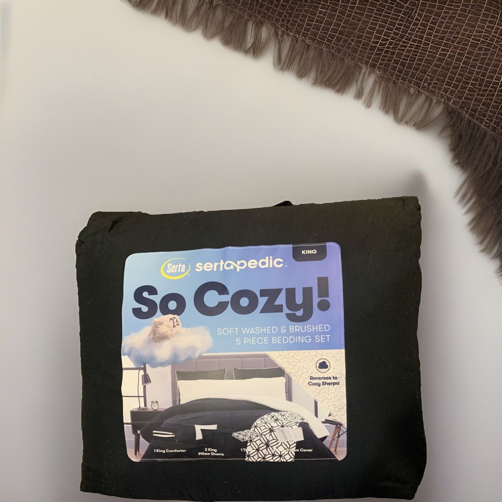 Transform your bedroom into a luxurious haven with this 5 piece bedding set from Sertapedic. Crafted with high-quality materials, this set includes a comfortable king size mattress, a matching box spring, and three decorative pillows, all adorned with the iconic Cozy brand logo. Whether you're looking to add some comfort to your bed or simply want to elevate the style of your room, this bedding set is the perfect choice. Designed for use in the bedroom, this set is ideal for those who want to create a cozy and inviting space. The set is available in a variety of sizes, including king size, and is perfect for use with a range of different beds and frames. So why wait? Add this stylish and comfortable bedding set to your bedroom today and experience the ultimate in comfort and style!