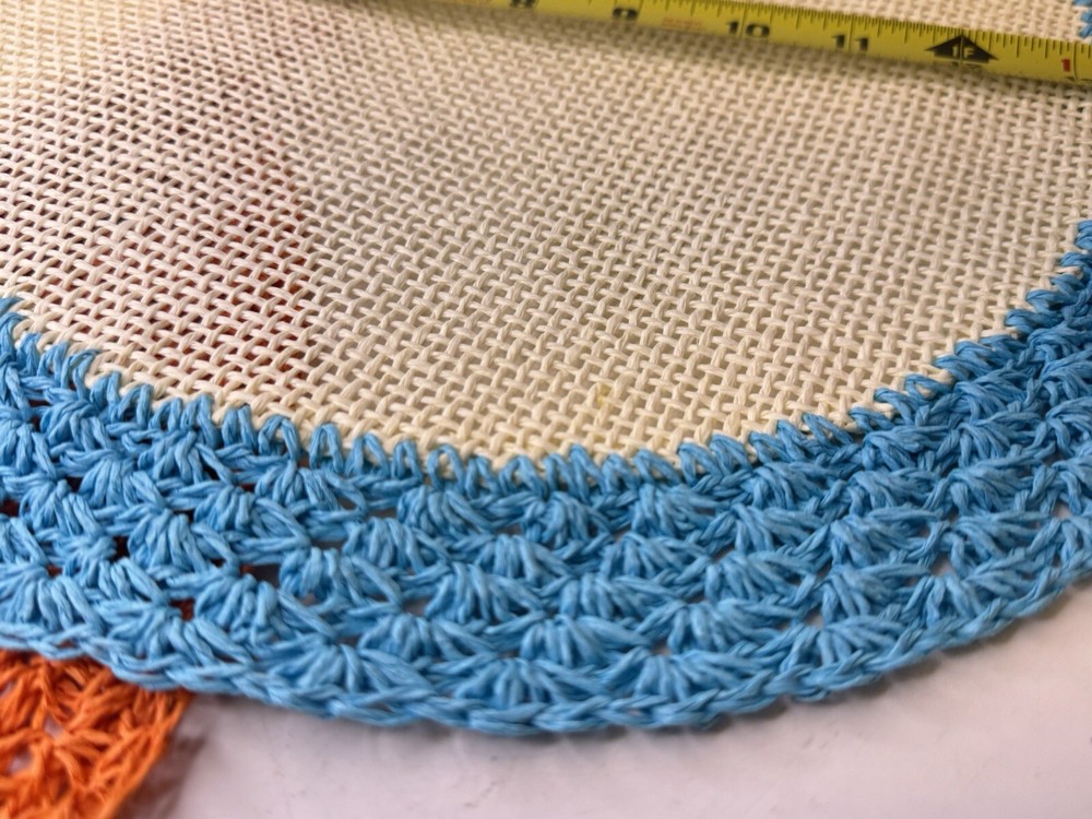 This set of 3 15" jute placemats in boho coral peach vintage color features a swirl pattern, making it perfect for a bohemian fashion theme. Made from polypropylene and jute, these round placemats are suitable for multipurpose use, adding a touch of beach and food & drink vibe to your dining table. Easy to care for with spot clean instructions, these placemats from Pier 1 are a stylish addition to your home decor.