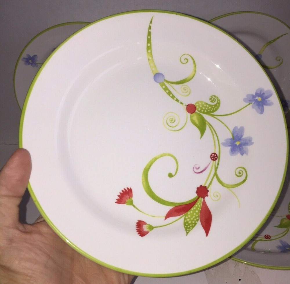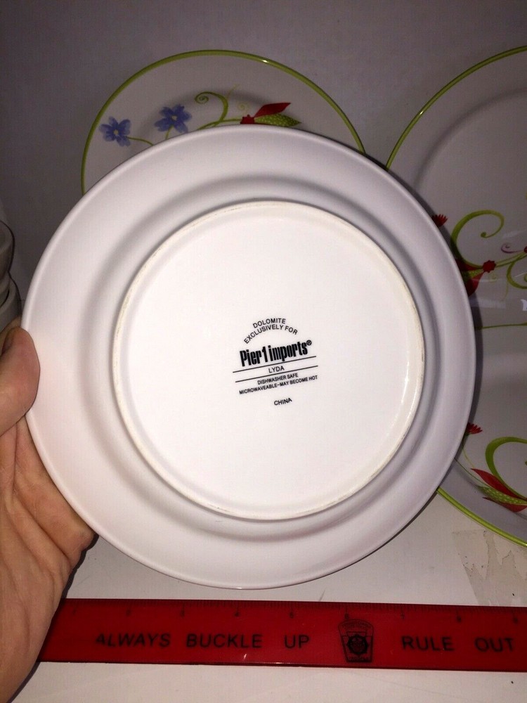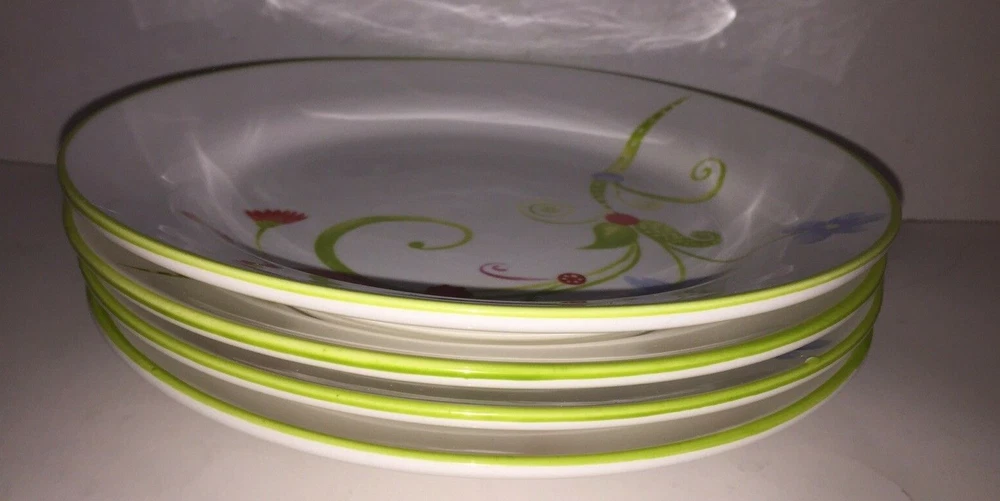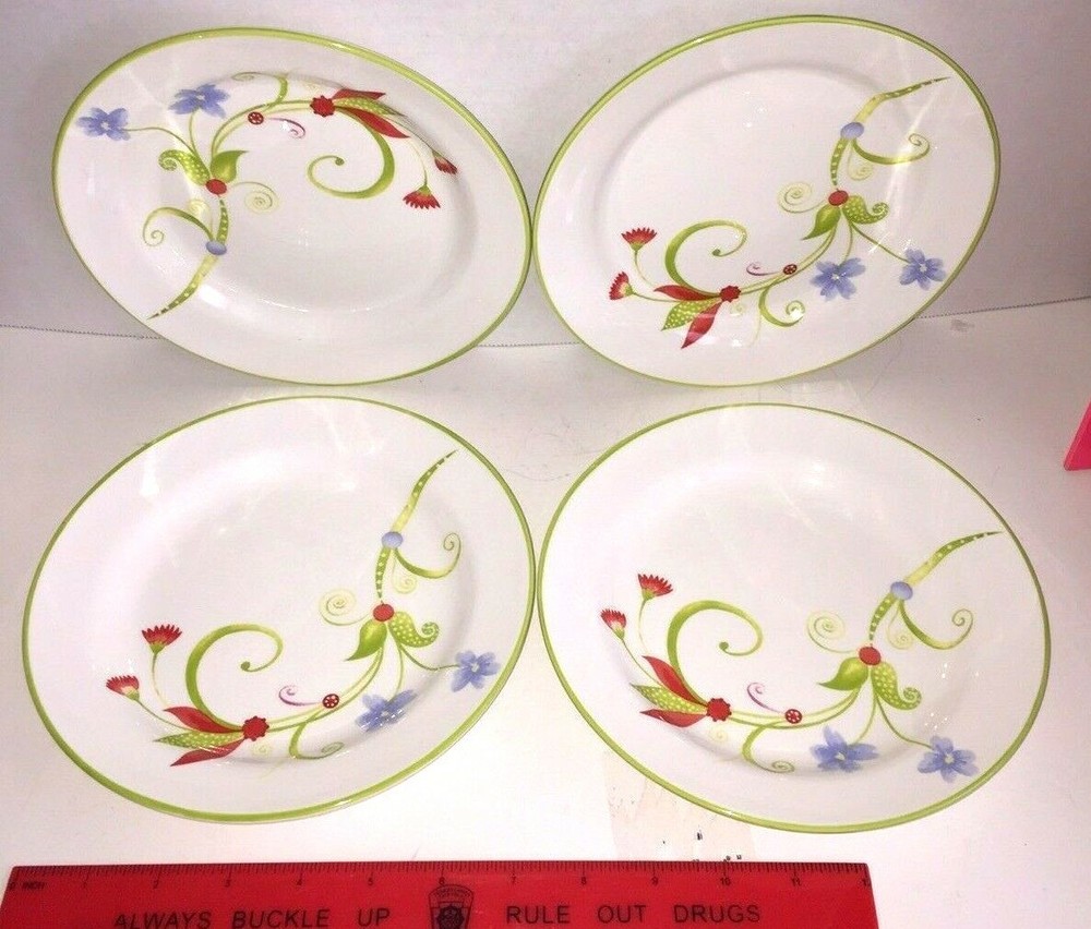 PIER 1 IMPORTS SET OF 4 "LYDA" 8 INCH PLATES Sold as shown, see no chips or cracks Pre-owned, so may have minor wear Each is 8 inches across, green rims 3 shipping options to choose from Please see photos for more details! Please ask all questions before bidding/buying! eBay Seller since 1999, so buy with confidence Thanks for stopping by ... TC