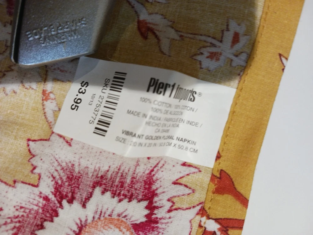 Set or 5 Pier 1 Cotton Napkins "Vibrant Golden Floral" Mustard Gold, Red & White 20" × 20" New With Tags