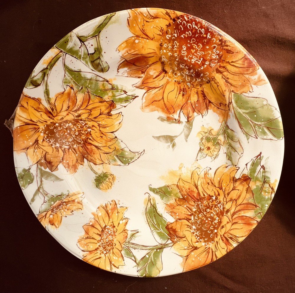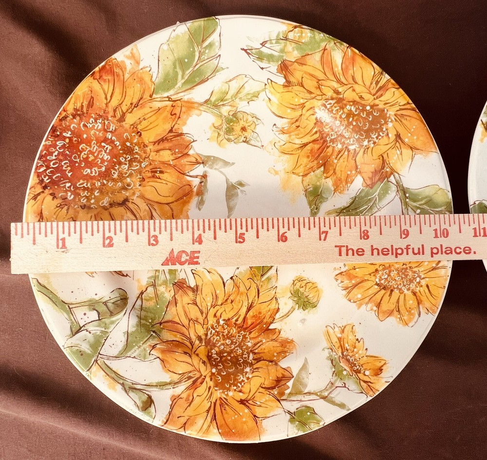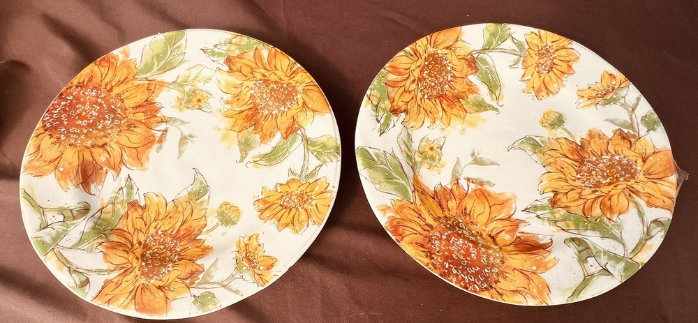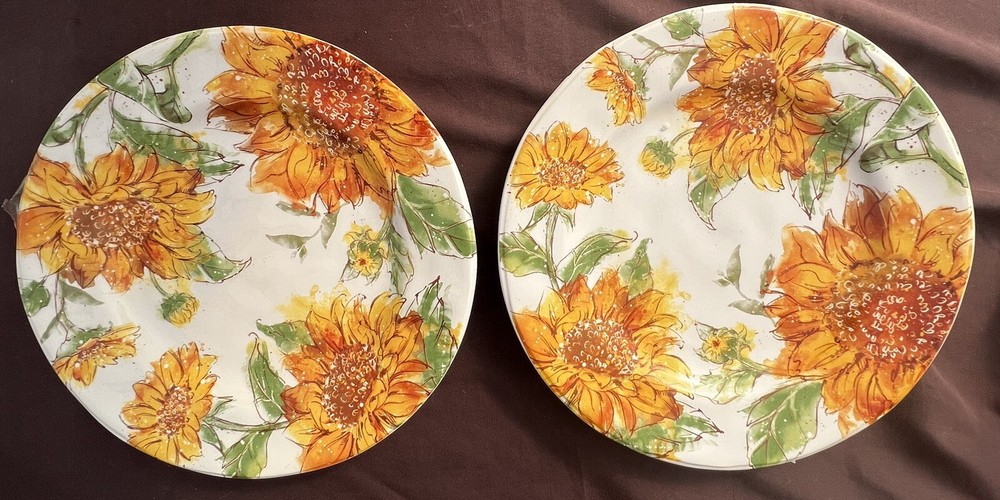 Set Of 2 PIER 1 SUNFLOWER BLOOMS 10.75” DINNER PLATES 1 Chip On Back Pic PRICED ACCORDINGLY FAST INSURED PRIORITY SHIPPING SHIPPING LESS WEST OF THE ROCKIES