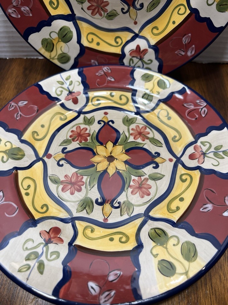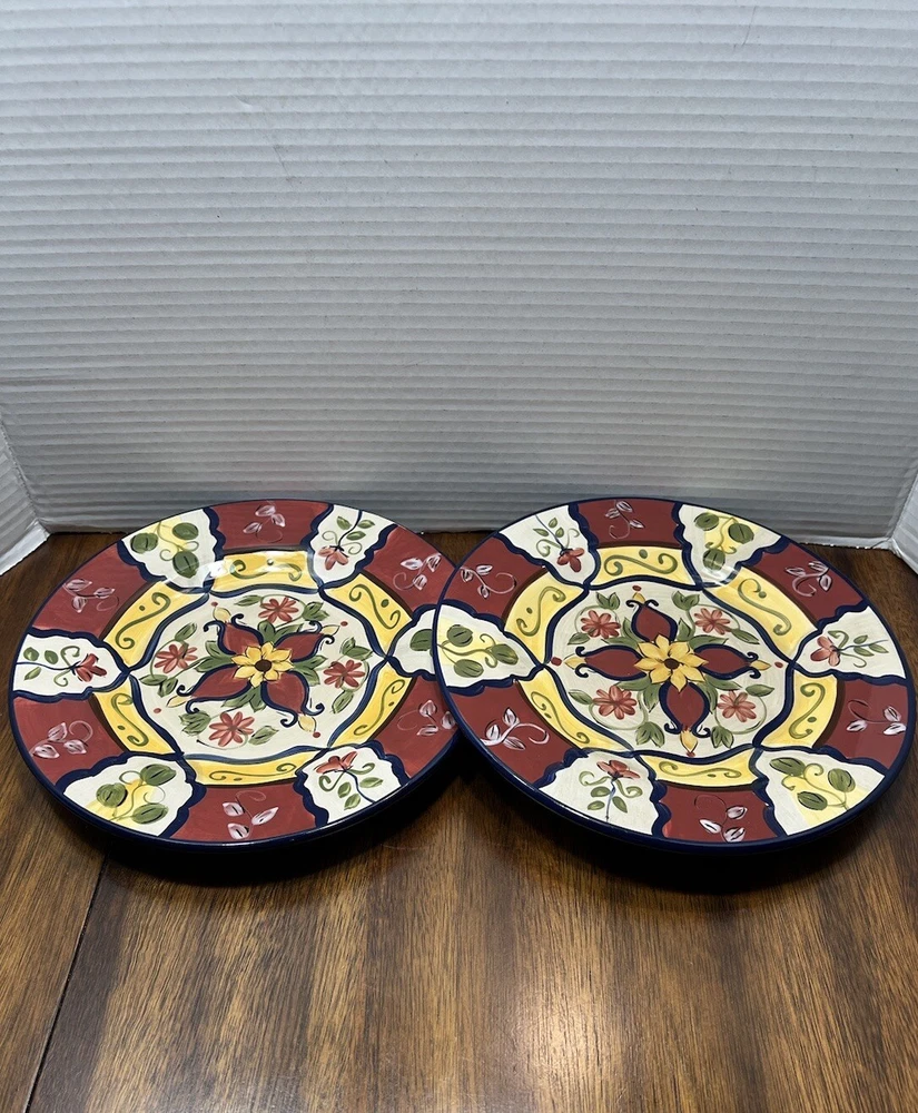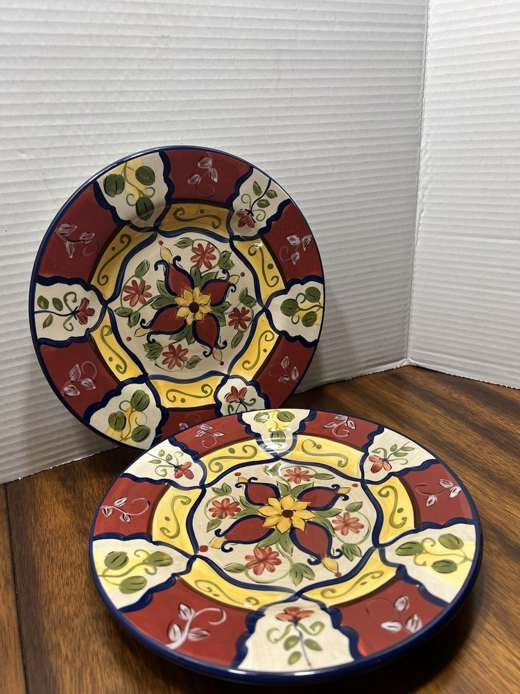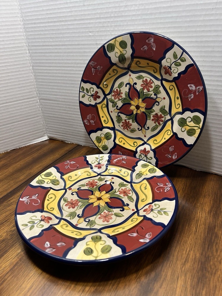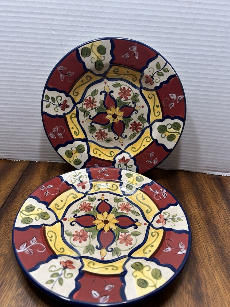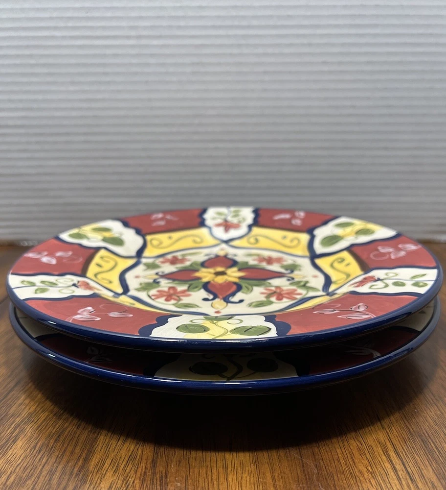 Set Of 2 Pier 1 Imports Vallarta Hand Painted Salad Plate 9" Floral Blu/Gn/Yw/Rd...