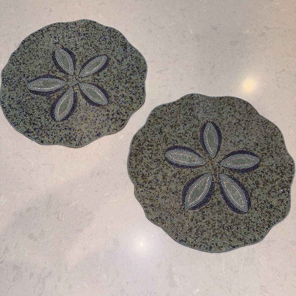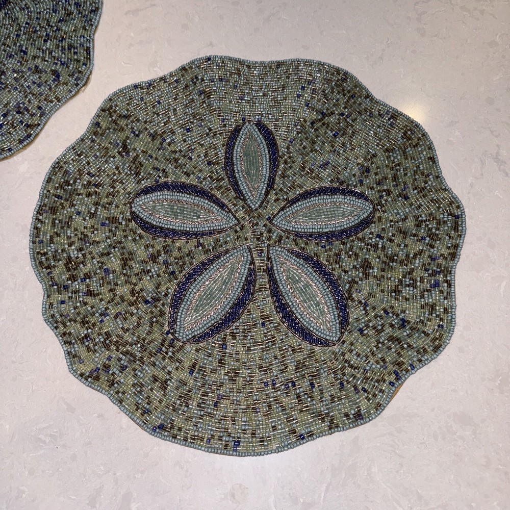 Set Of 2 Pier 1 Sand Dollar Beach Placemats Beaded Coastal Blue Green 15". Condition is New with tags. Shipped with USPS Ground Advantage....