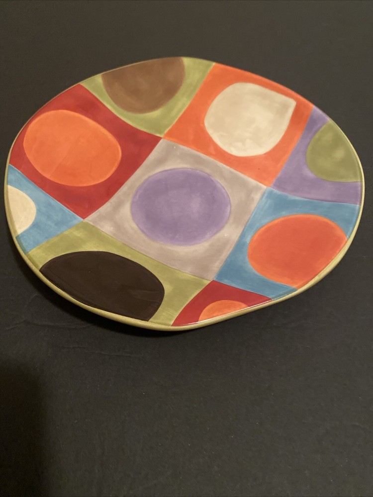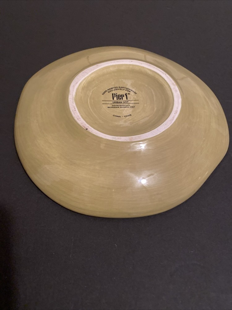Set of 3 Pier 1 Imports Urban Dot salad plates. The round plates measure 8.5 inches in diameter and feature a playful polka dots theme in a glossy finish. Made of durable stoneware material, these plates are perfect for all occasions and are sure to impress design for years to come. Excellent Used Condition. Smoke free home.