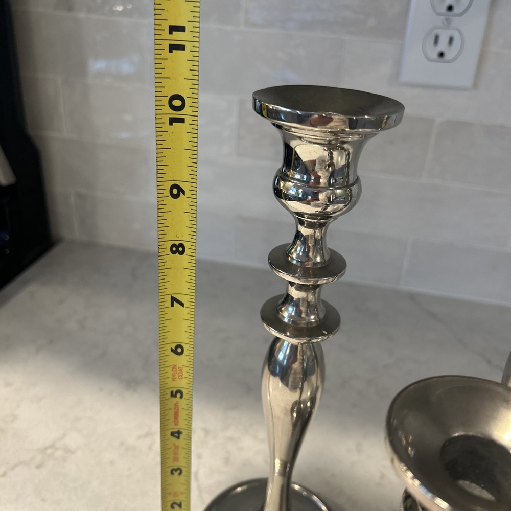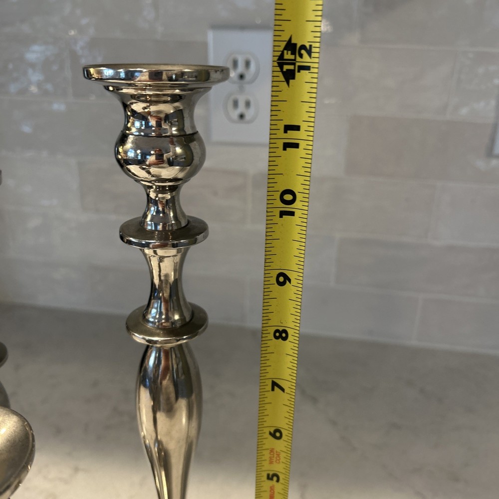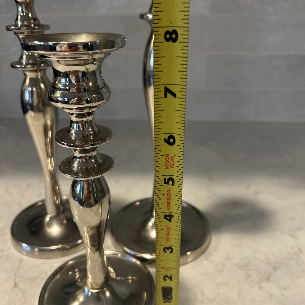 Set Of 3 Pier One Imports Silver Plated Candle Holders 8"H, 10.5"H, 12”H EUC, like new