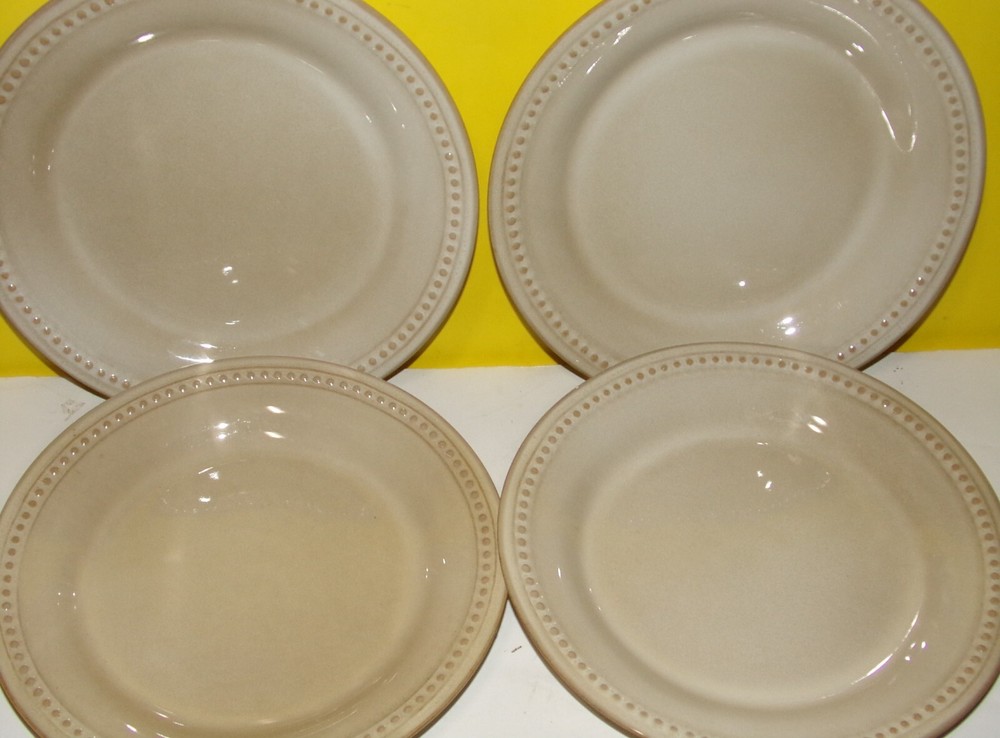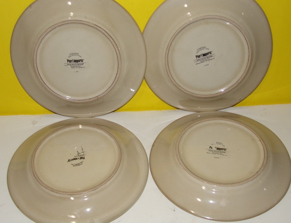 Set Of 4 Four Pier 1 Imports Spice Route Sesame 8 3/8" Beaded Salad Plates - In good shape - No chips or cracks. Still Glossy and Bright - Utensil use wear scratches, Nothing deep. Some of the Pier 1 Graphics Lettering is faded off, No biggie - Still Pier 1