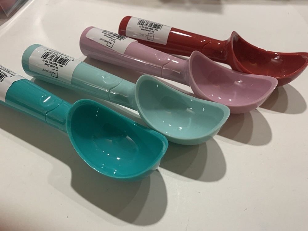 Set Of 4 Mainstays Ice Cream Scoops 7" Non-Stick Plastic: Red Pink Green & Mint. Condition is "New". Shipped with USPS First Class.