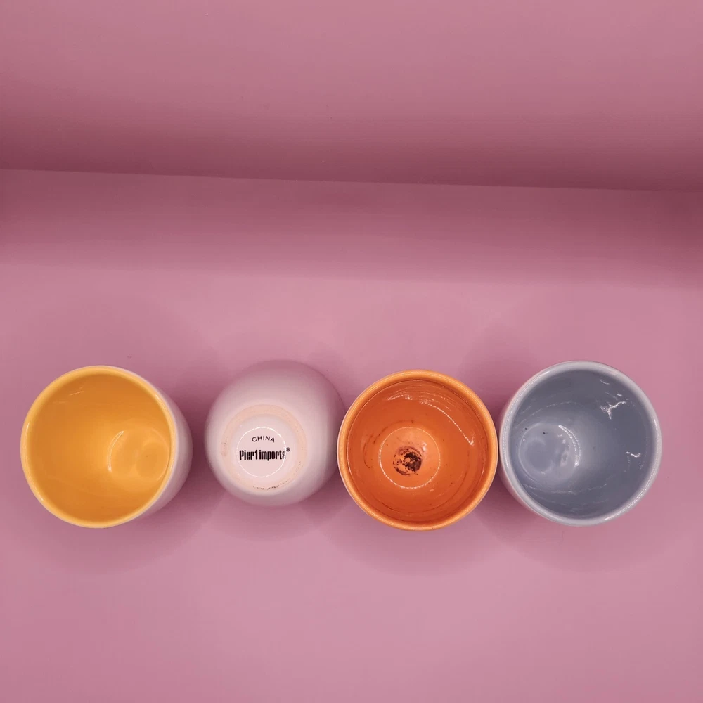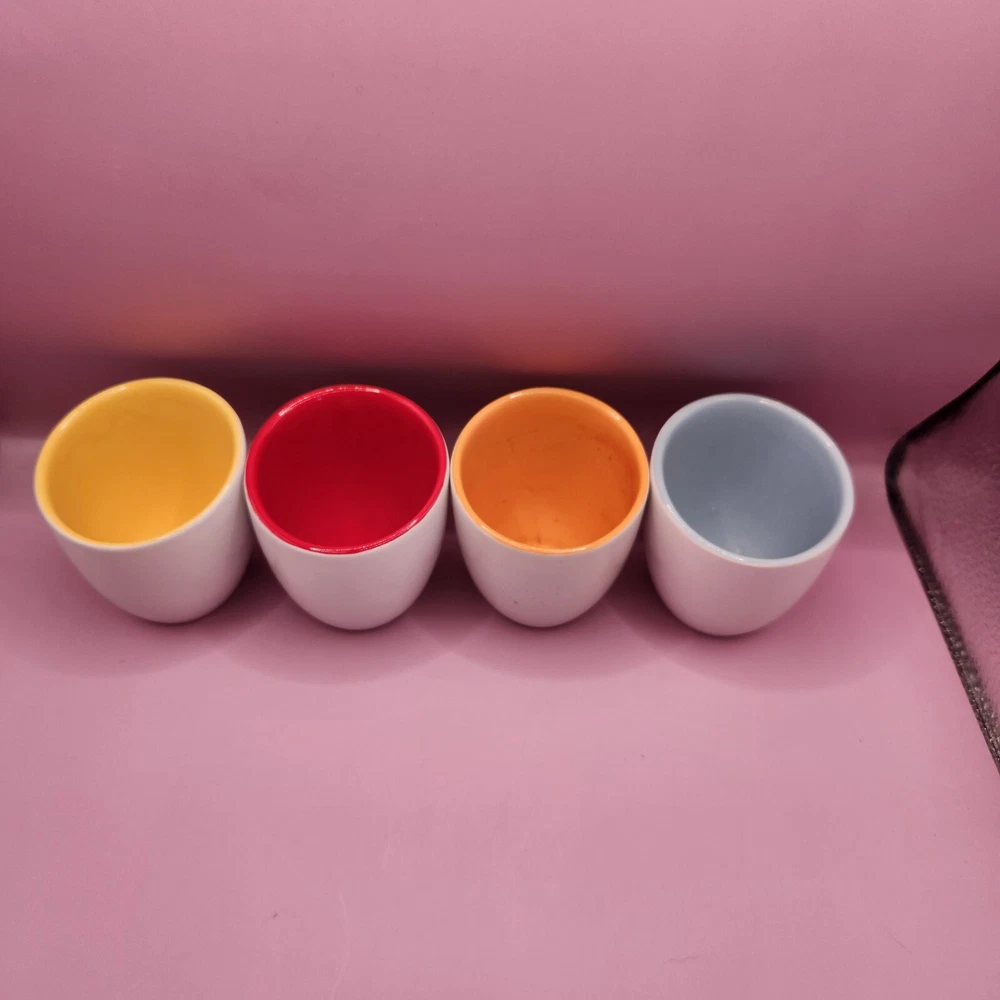 Excellent pre-owned condition with no chips, cracks, or breaks! There is a black mark in the bottom of the orange one, though. Priced for 3, get one free! Packaged professionally in bubble wrap and crushed packing paper! Measurements: 3"T x 2 3/8"W