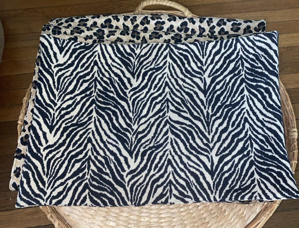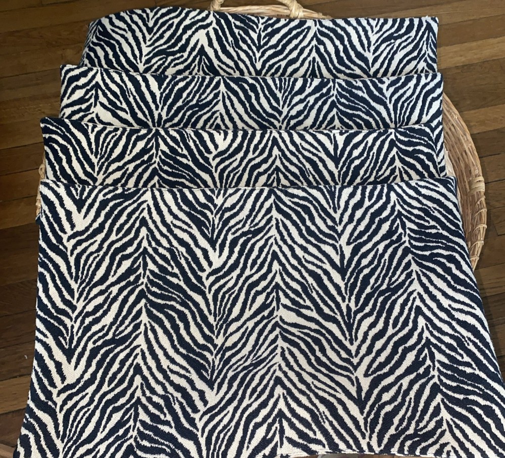 Set of four Pier 1 Imports(no labels present ) placemats. The placemats are reversible featuring a zebra design on one side and the other a leopard design. They measure 13" x 19" in size. Excellent pre owned condition, no flaws to be noted.
