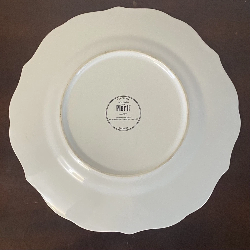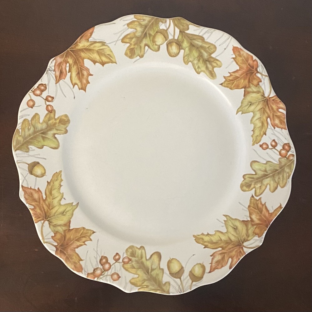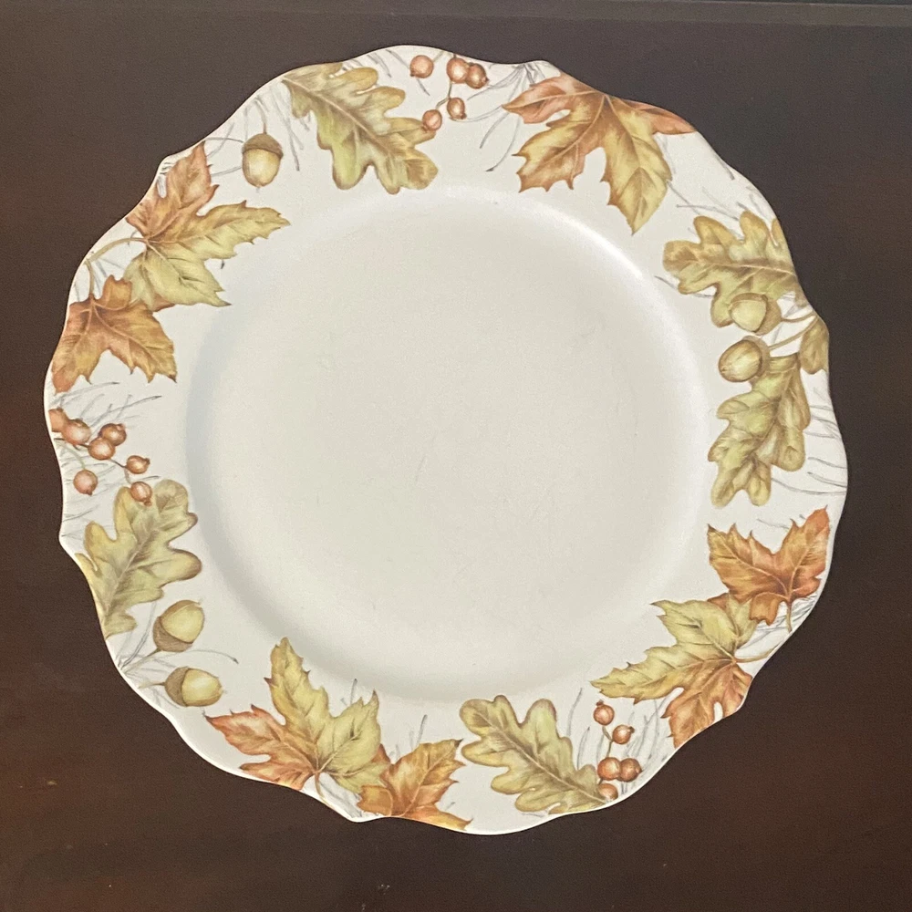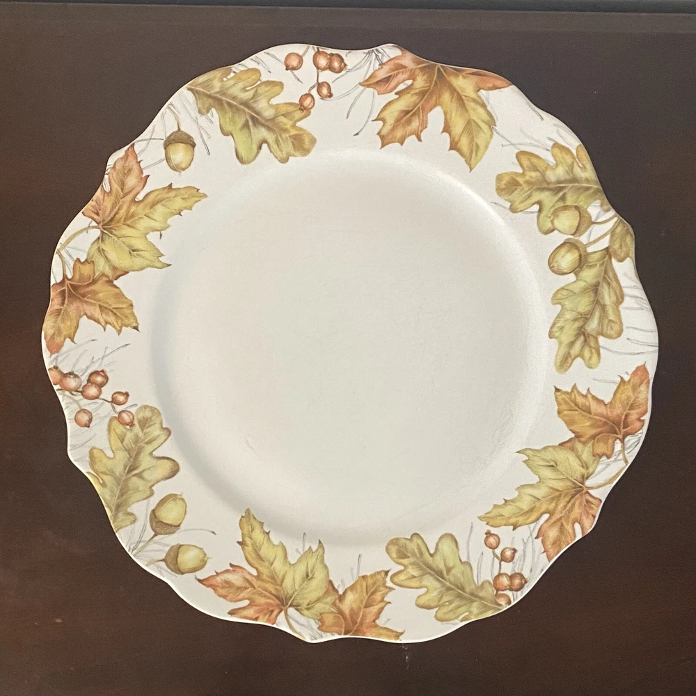 Set Of 4 Pier 1 Mazey the Squirrel Collection “LEAVES” 10.5” Dinner Plates. There are no chips or cracks. There are some utensil marks.