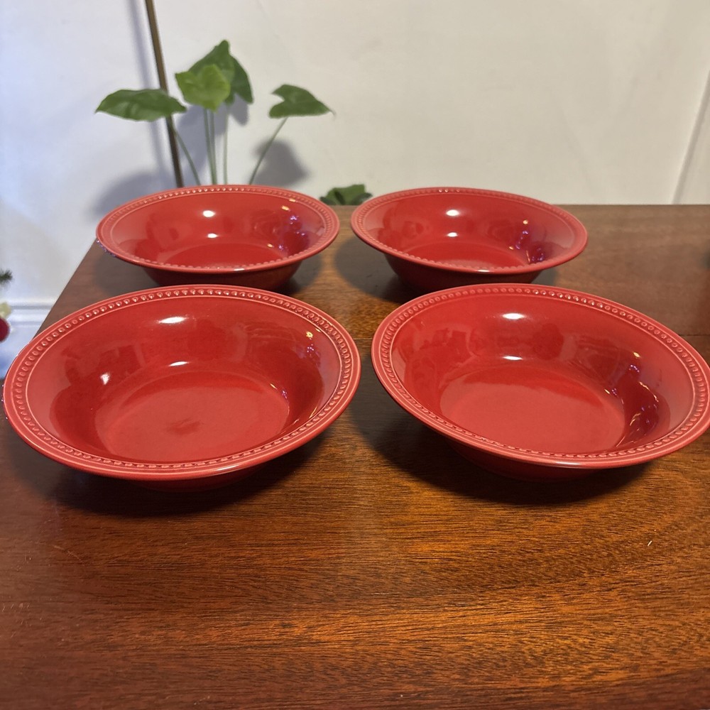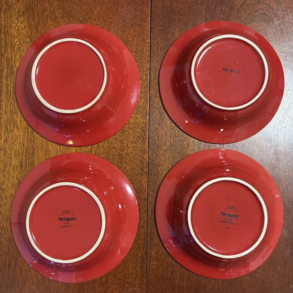 Set Of 4 Pier 1 Spice Route Paprika Red Soup Cereal Bowls 8.25”...