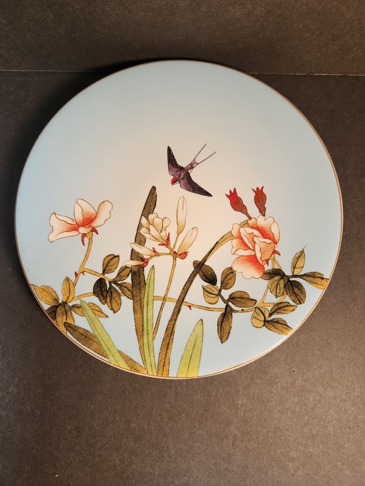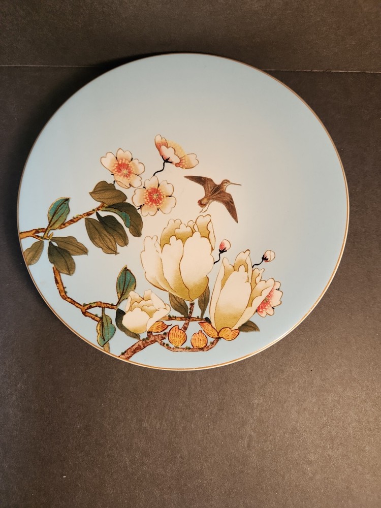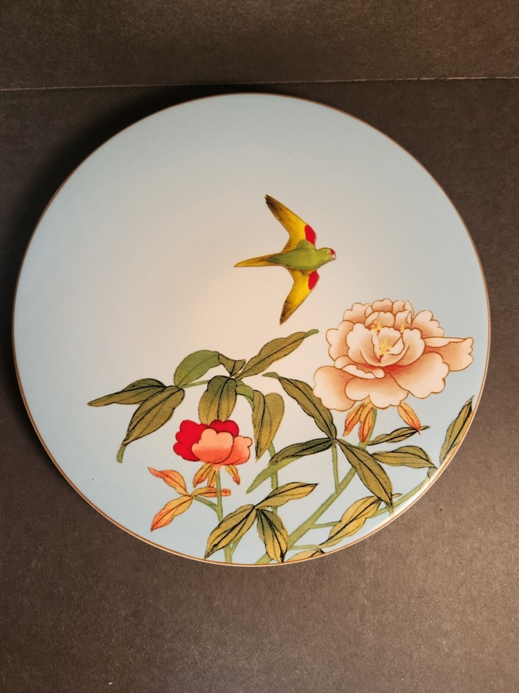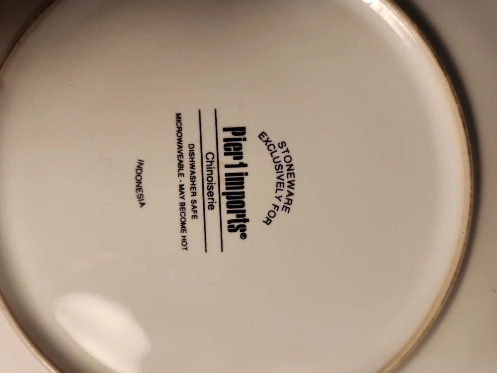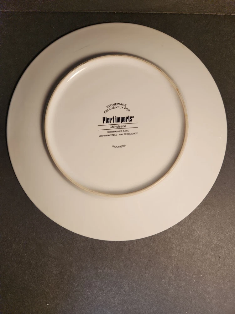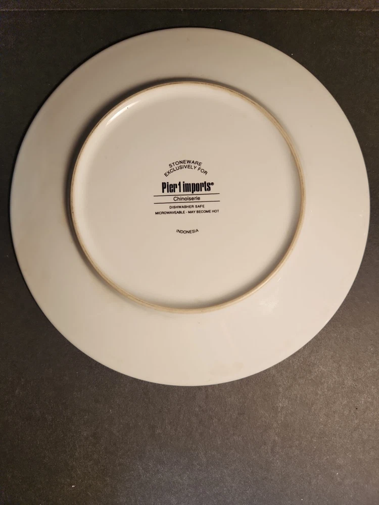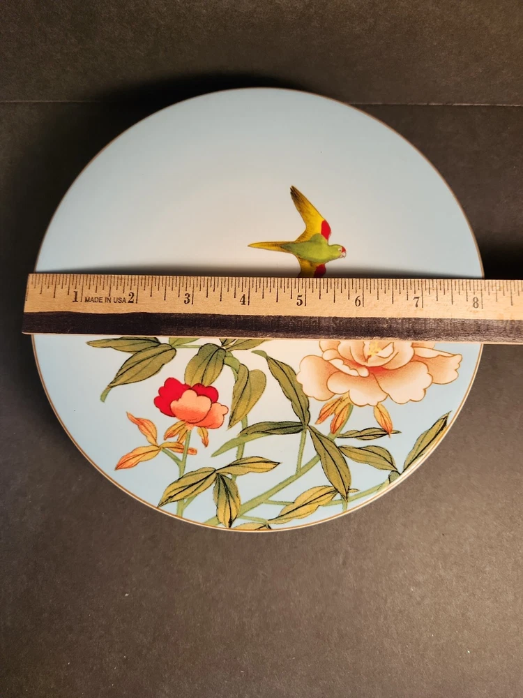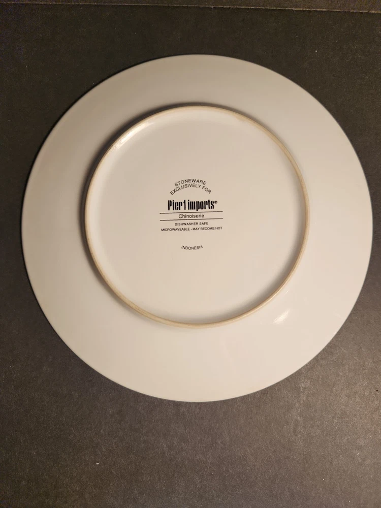Set Of 4 Pier One Chinoiserie Salad, Dessert Plates, Flowers and Birds. These plates are here just in time for your first spring party. No chips or cracks. There are signs of wear with surface scratches. The colors of the flowers and birds come alive against the blue background. Beautiful!!