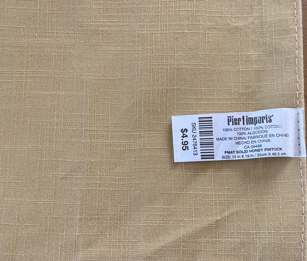 Set Of 4 Pier One Imports Placemats Honey Pintuck Machine Washable. ~ New ~ Set of 4 Placemats ~ Honey ~ Rectangle ~ Approximately 13" x 19" ~ Pintuck Pattern ~ 100% Cotton ~ Machine Washable!...
