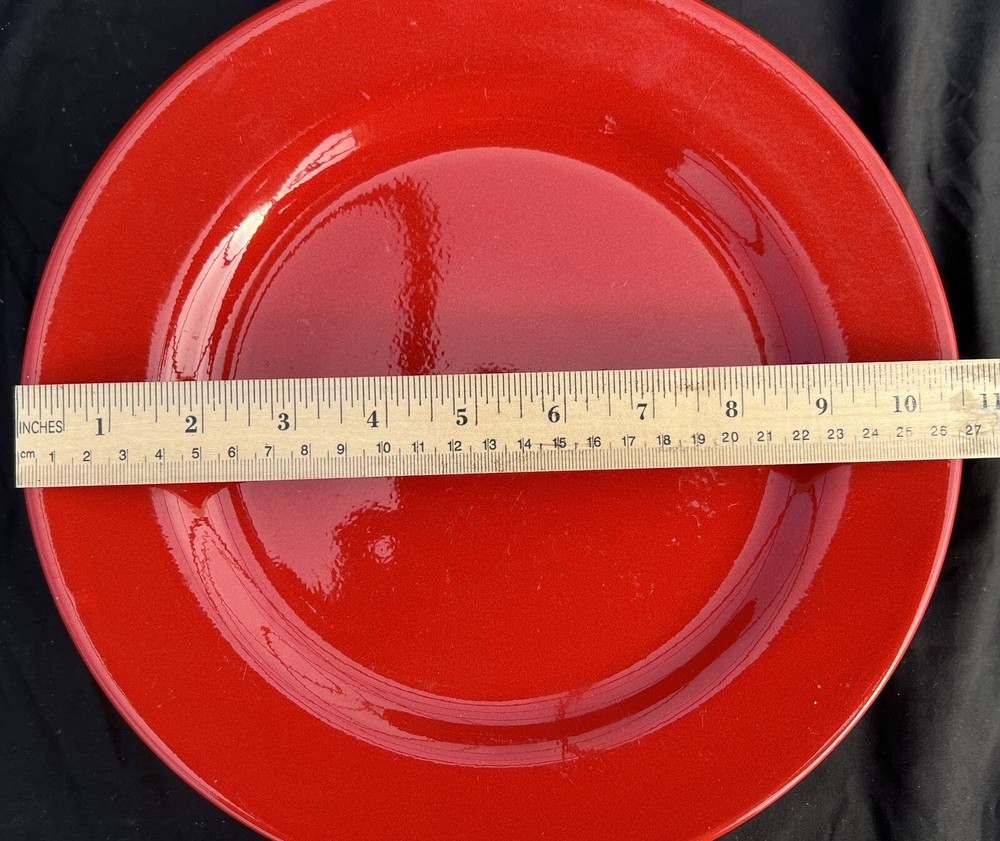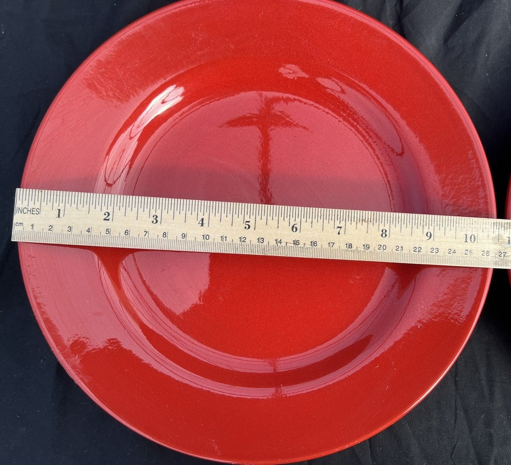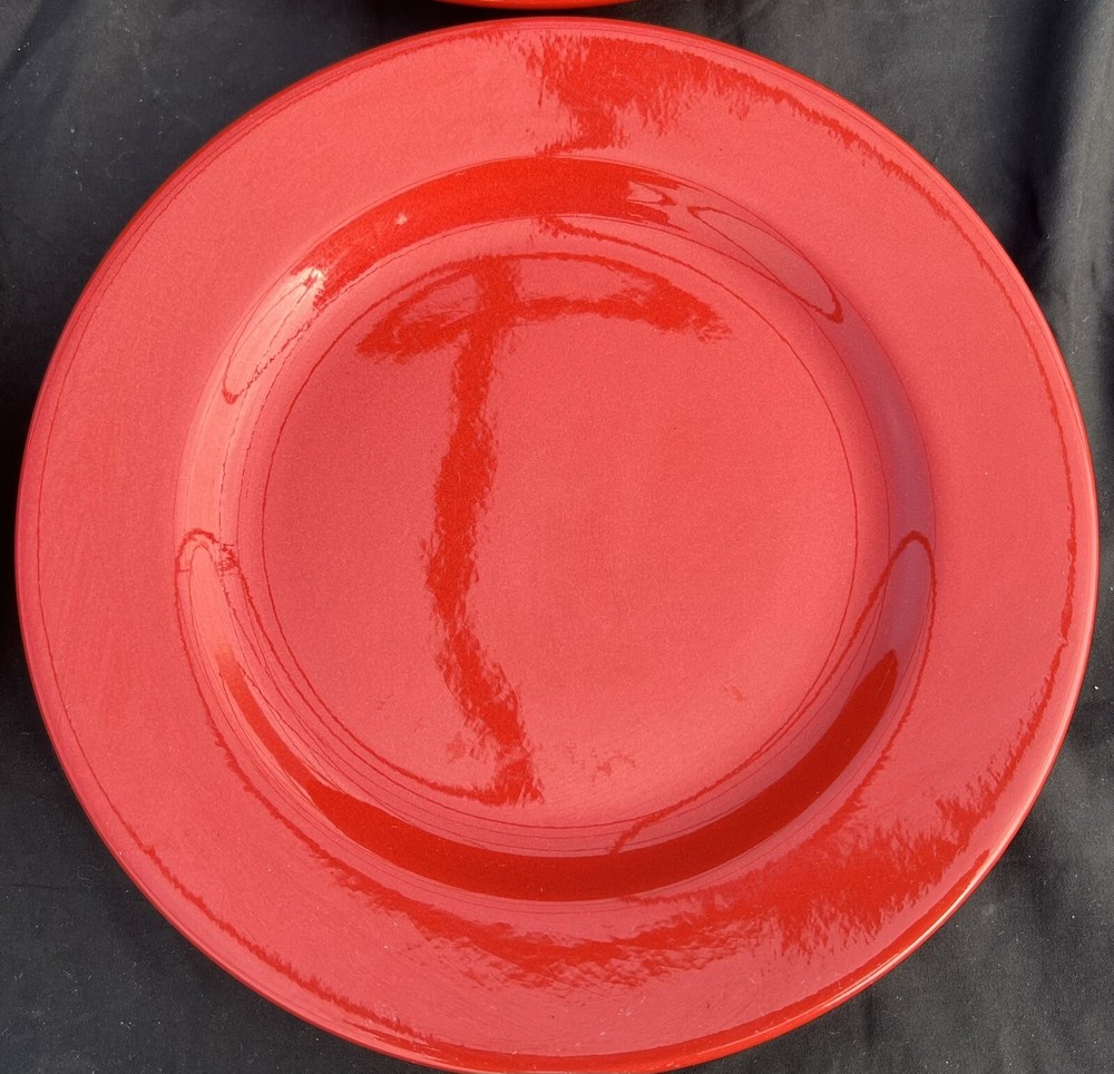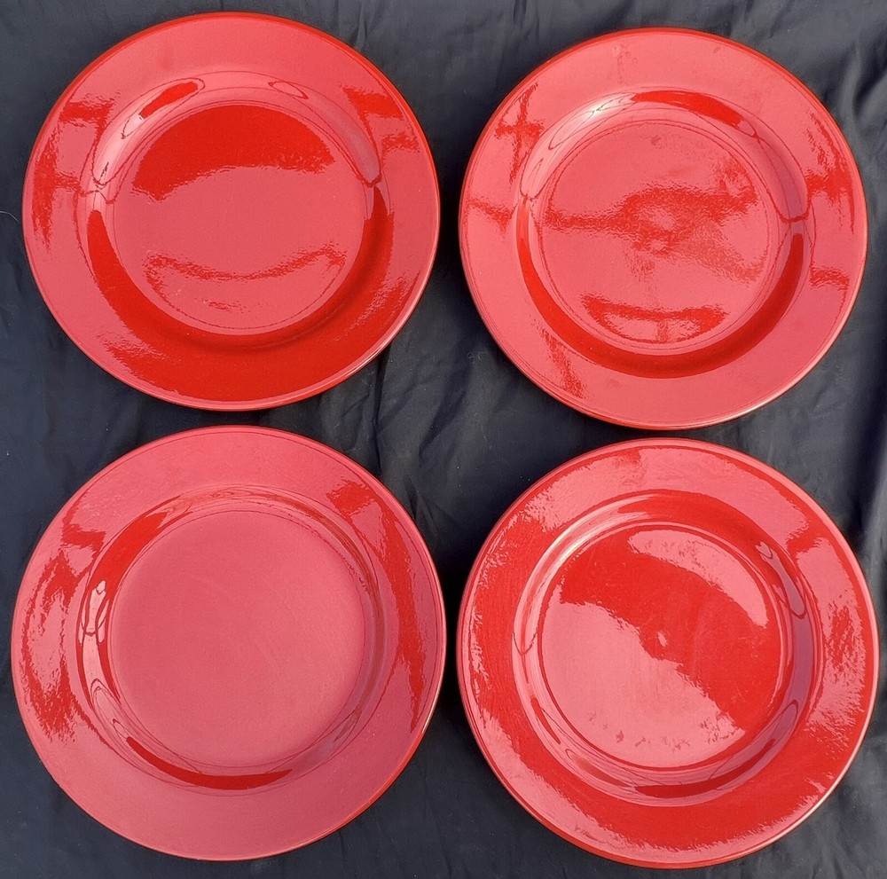 Set Of 4~Pier 1®️~Earthenware Red Dinner Plates Spain 10.5”-some Scratch Marks—photos priced accordingly FAST INSURED PRIORITY MAIL SHIPPING LESS WEST OF ROCKIES 2 sets available I can ship one set for $22 Let me know if you plan to buy both sets so shipping can be calculated.