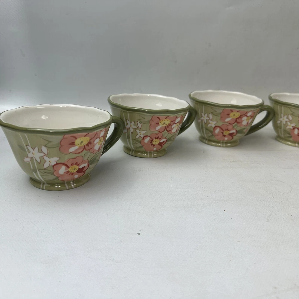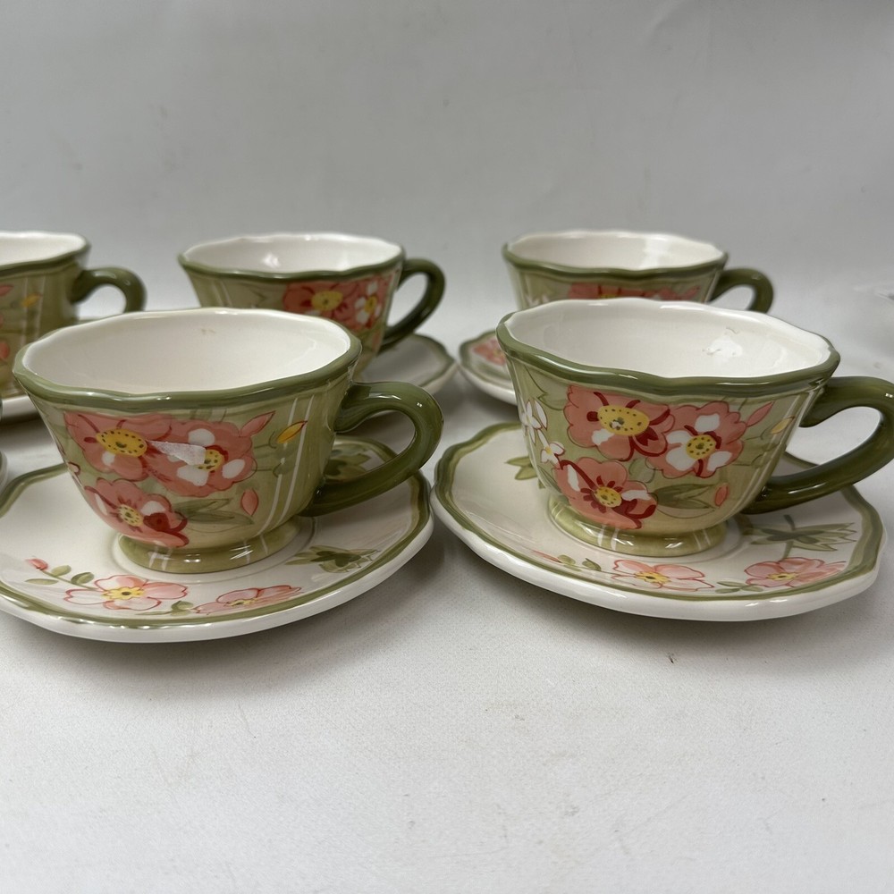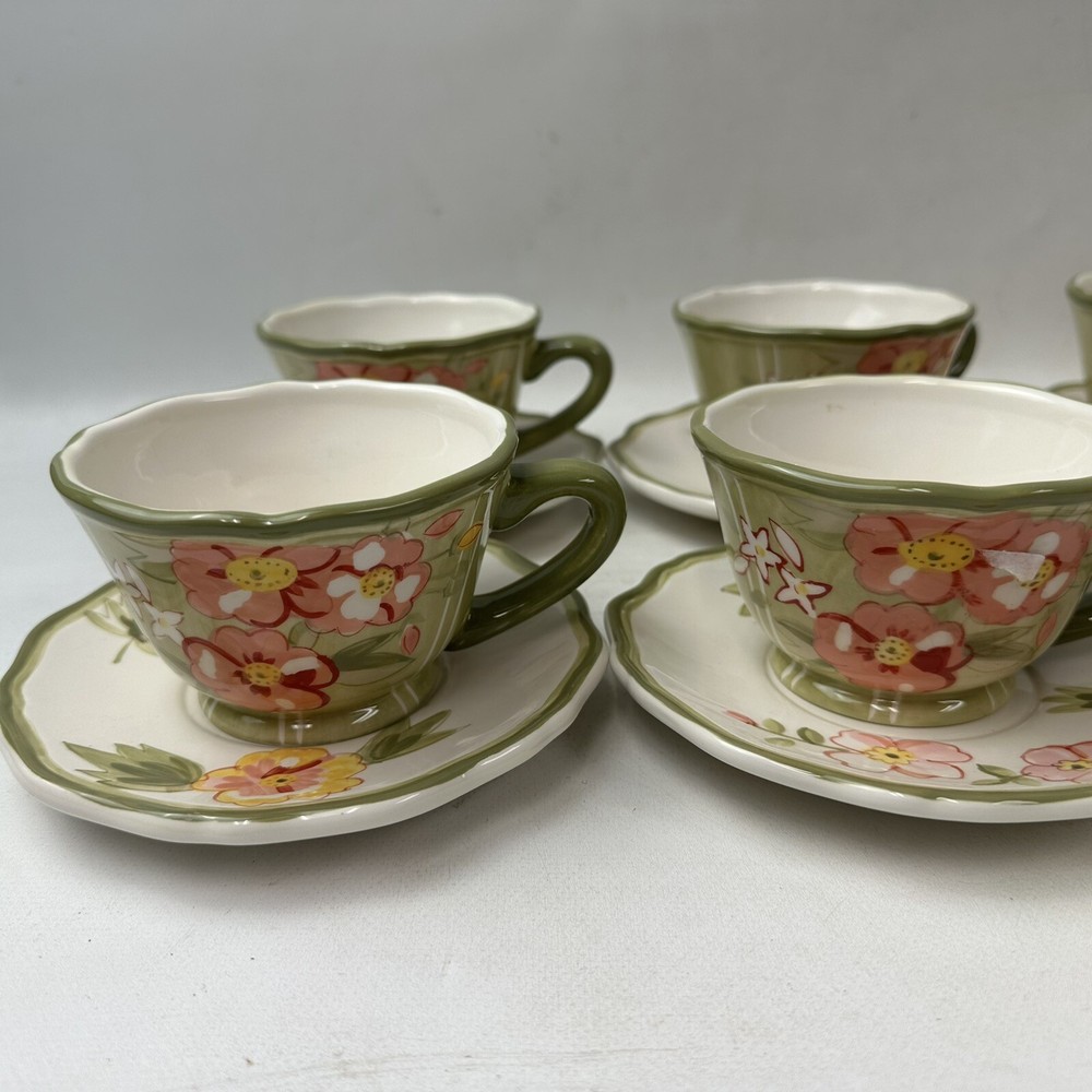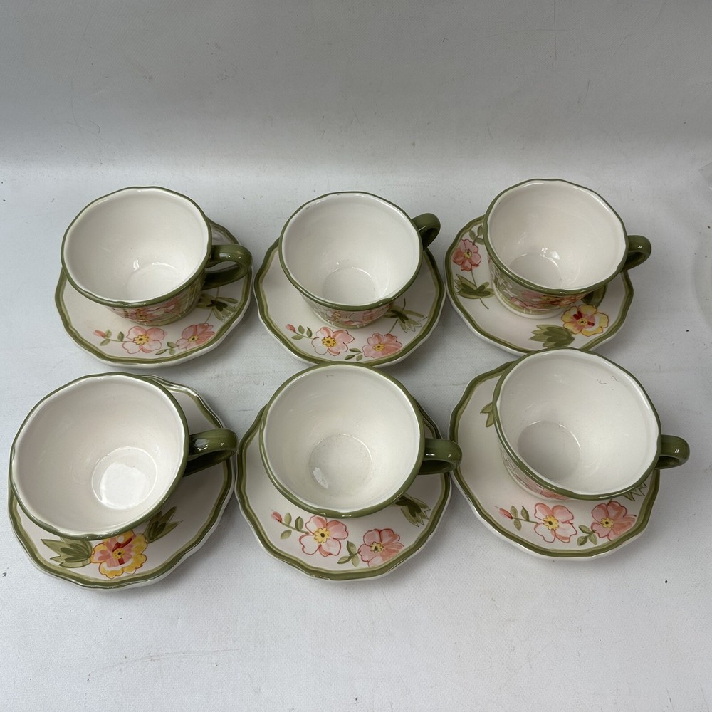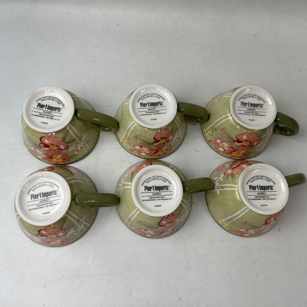 Set Of 6 Pier 1 Imports Audrey Cups And Saucers Earthenware Floral