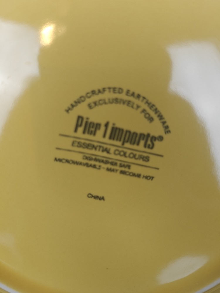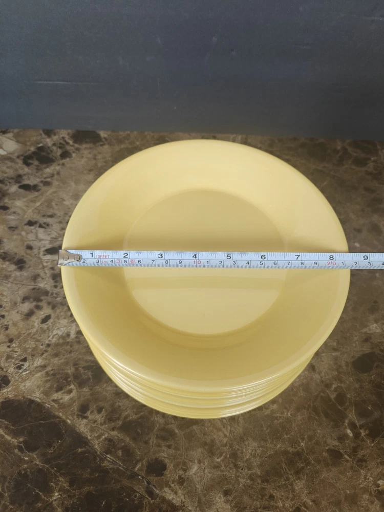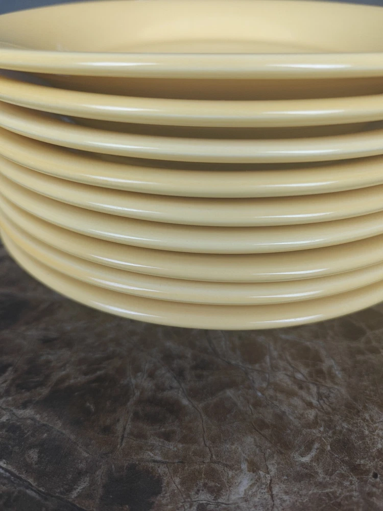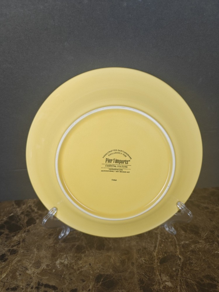 Set Of 9 Pier 1 Essential Colours Yellow Round Salad Lunch Plates 8.5" Pier One. Utensil marks present. No cracks or chips.