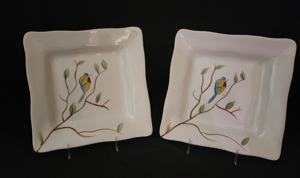 Two (2) square salad/dessert plates. 8 in square. Excellent condition.