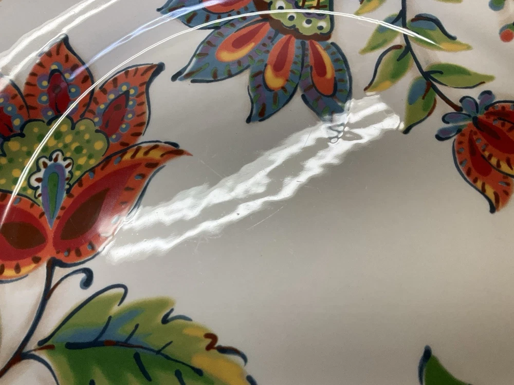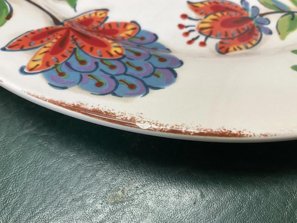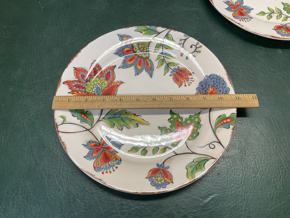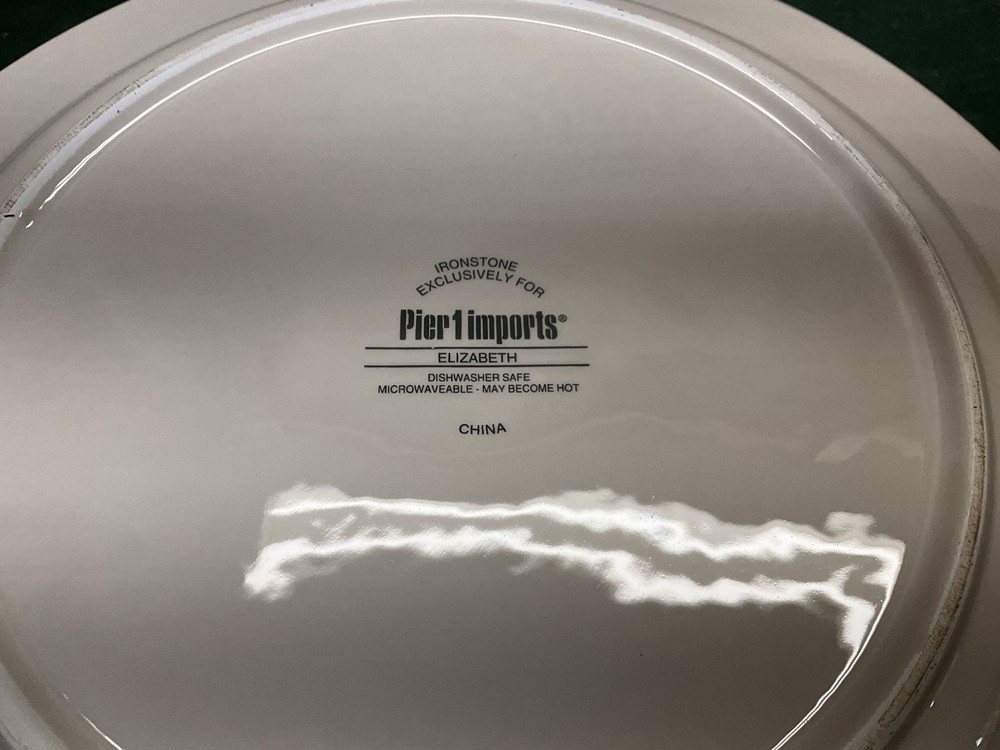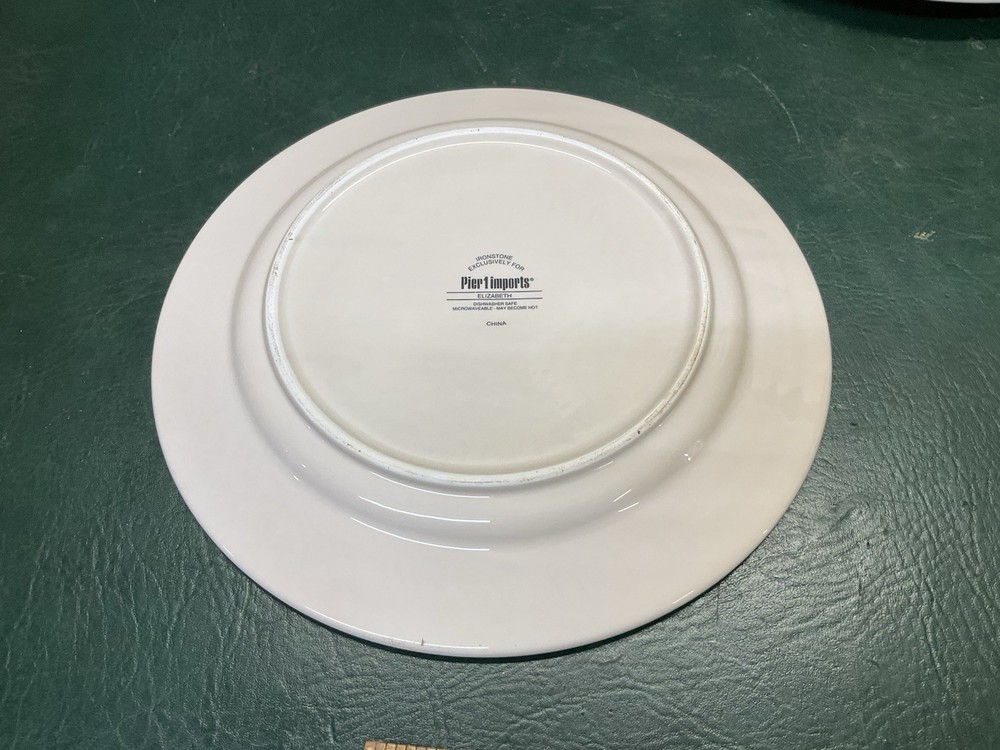 Fresh from the local estate we offer you this set of 2 PIER 1 IMPORTS Elizabeth Jacobean print floral ironstone dinner plates. They are in used condition with wear, utensil marks, no cracks or crazing. They measure 10 3/4" in diameter. Marked as shown. Please check all the photos for more details, they are part of the description.