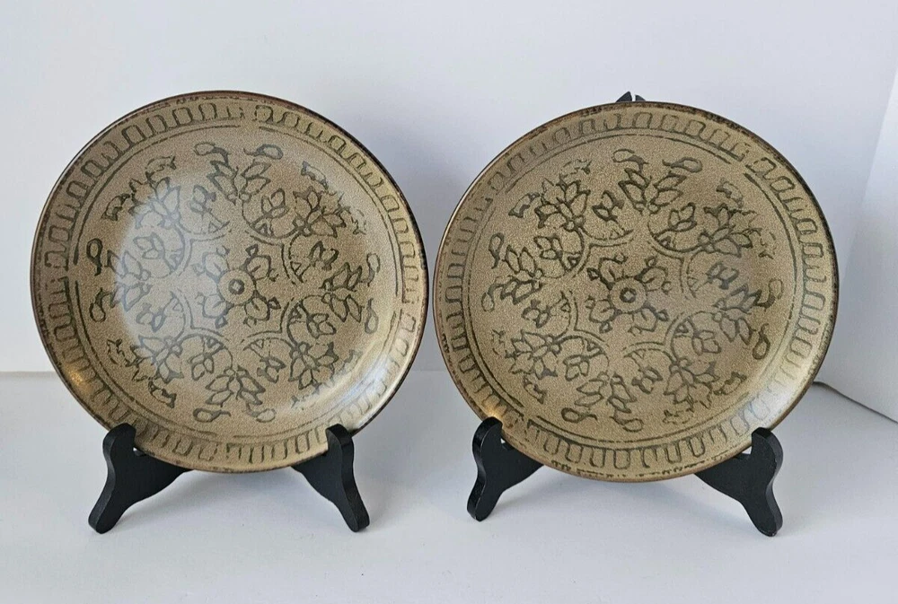Set of 2 Pier 1 BATIK Olive Green 8 1/4 " Salad Plates Pier 1. In perfect condition, refer to pictures.
