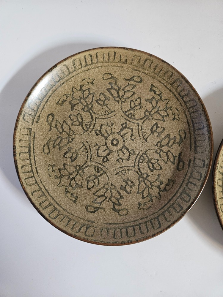 Set of 2 Pier 1 BATIK Olive Green 8 1/4 " Salad Plates Pier 1. In perfect condition, refer to pictures....