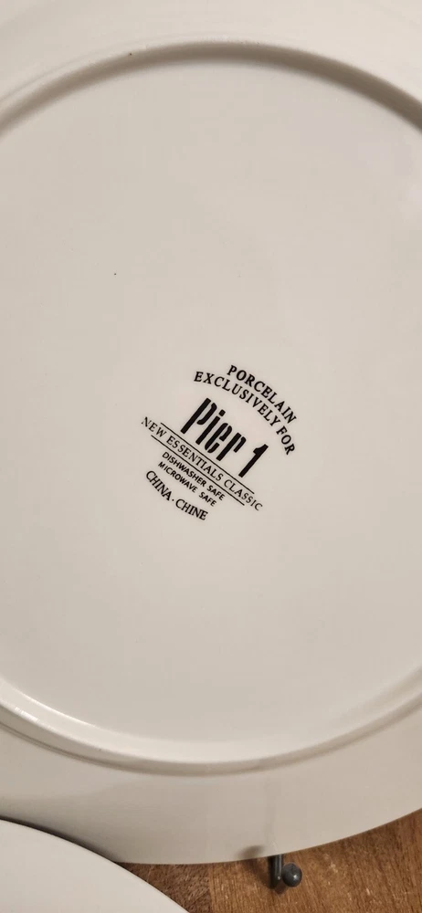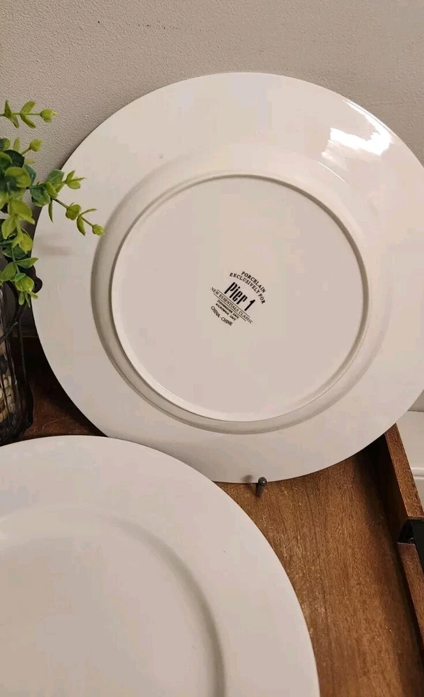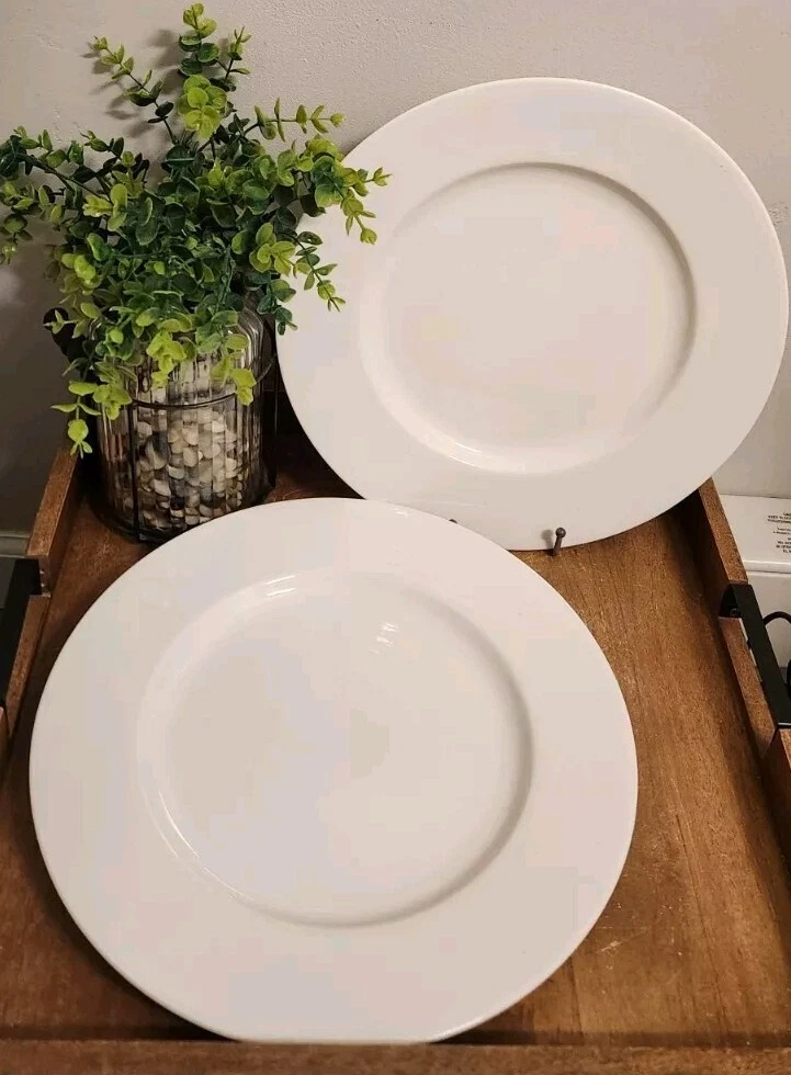 Set of 2 Pier 1 Imports New Essentials Classic Chop Plates 13" White EUC Excellent used condition. They look new. I will not separate & I'm not taking offers. At the time of listing, I have 3 sets of 2. I also have additional pieces listed in this pattern. Combined shipping is done in the form of a refund once the orders are packed. Max weight per box is approx 25lbs.