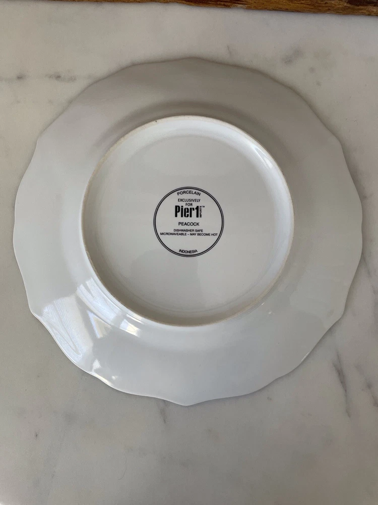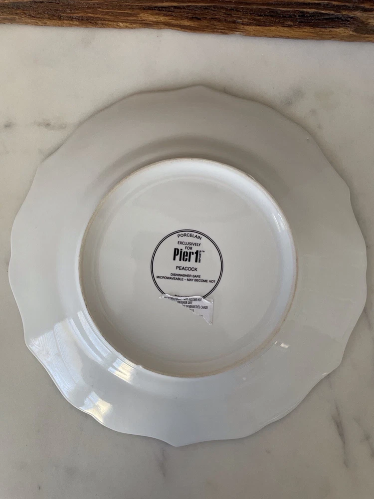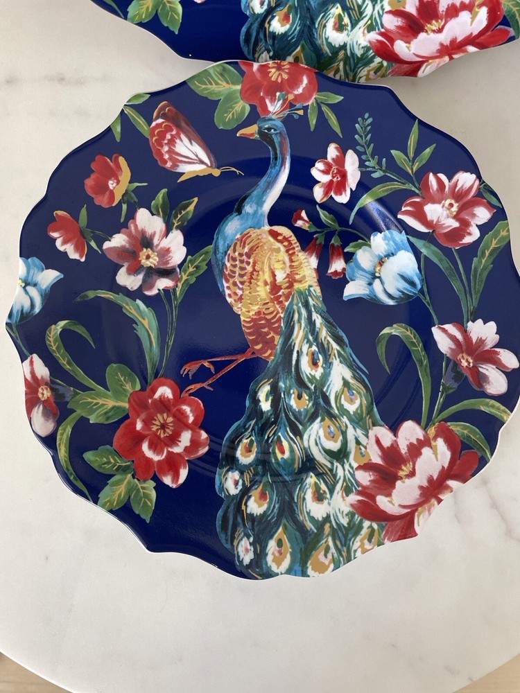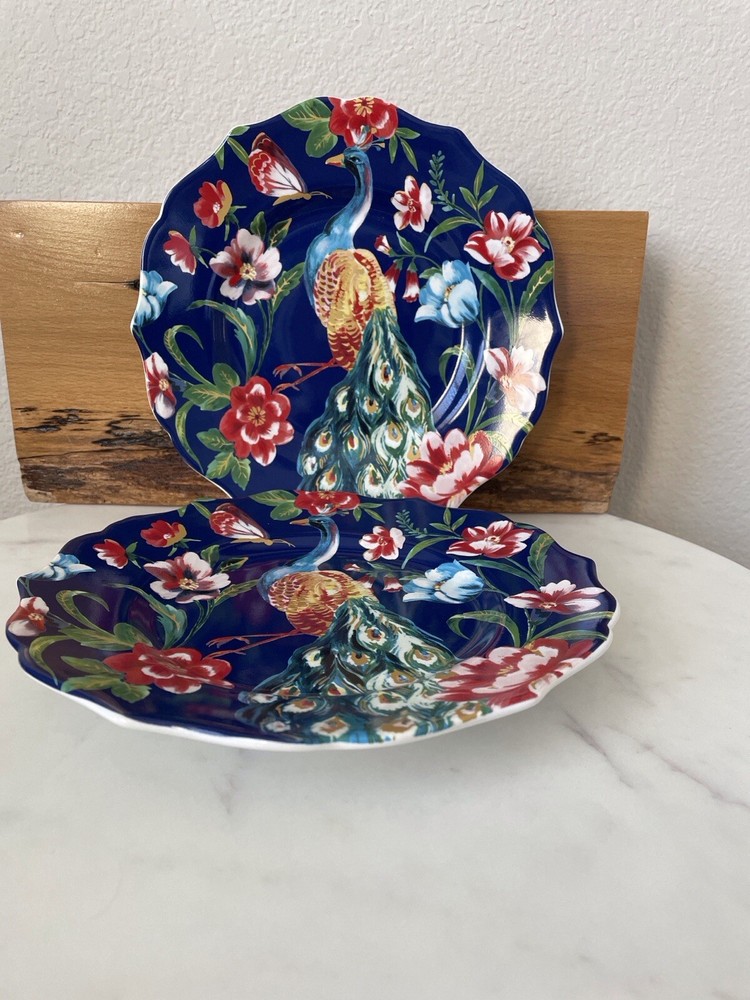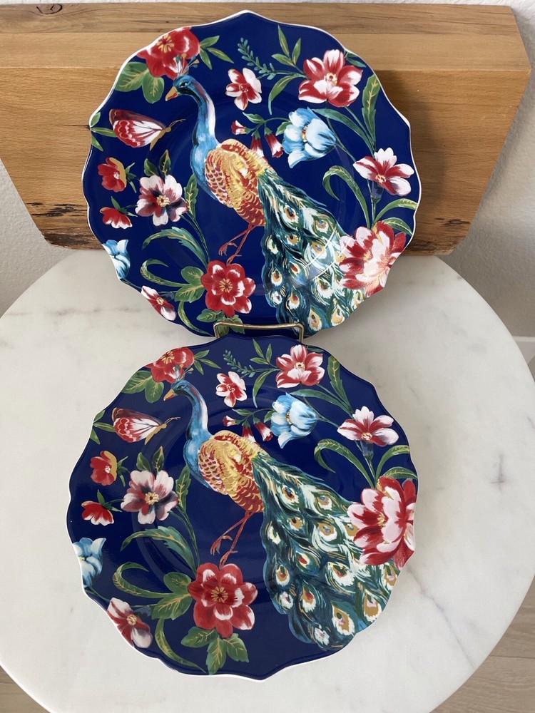 Set of 2 Pier 1 Imports Peacock & Floral Lunch Salad Plates Multi Scalloped NWOT. Please check the photos for the details and measurements. Consider the photos as a part of listing description. The items are from smoke and pets free home.