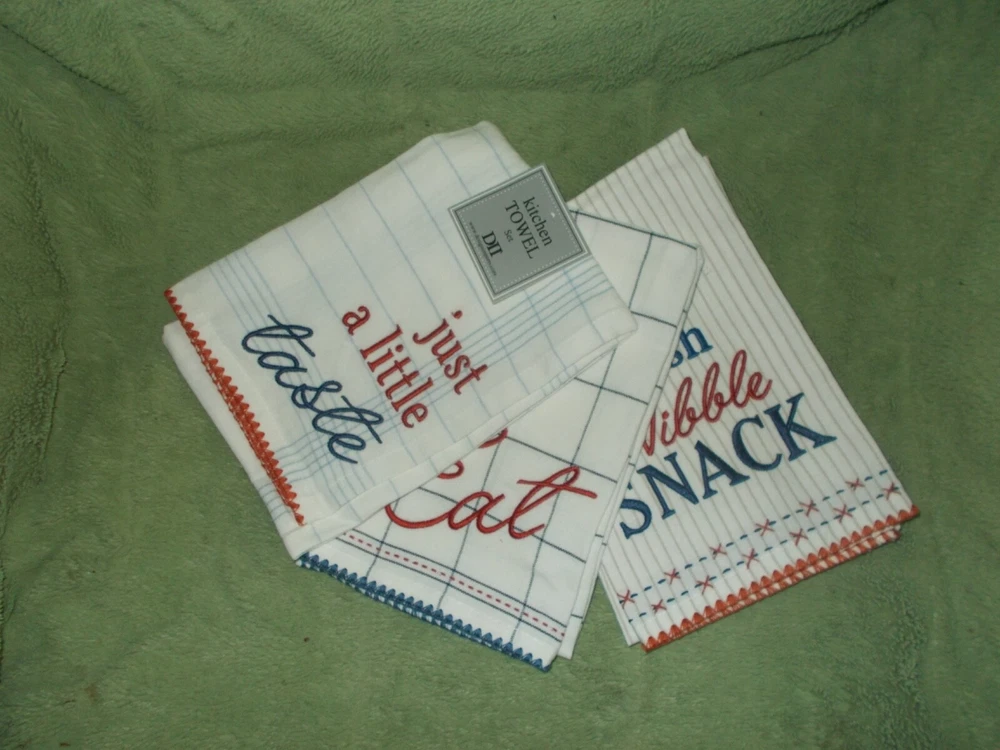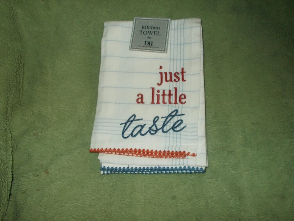 Y ou are purchasing a Set of 3 Design Imports Asst What'S Cookin' Embellished Dishtowel 2025 New with Tags 2025 Description "DII offers full collections of trend based designs, bringing you fresh, innovative lines of quality home and garden products for every season. Let DII products become a valuable part of your life." Design Imports Highlights PERFECT DISH TOWELS TO TACKLE ANY JOB: Set of 3 dishtowels measures 18x28" to tackle all of your drying and cleaning kitchen tasks EASY CARE LONG-LASTING MATERIAL: 100% Cotton Fabric, Machine Washable; Cold water in gentle cycle & tumble dry low; Do not bleach or run through a hot dryer; Low iron as needed; Wash before first use DECORATIVE and FUN FOR HOLIDAY KITCHEN: The festive towels coordinate with your kitchen decor & create a holiday kitchen during the joyful season Specifications Number of Pieces: 3 Piece 1: 18 inches (L) x 28 inches (W), Quantity 3 Fabric Name: Woven Textile Material: 100% Cotton Includes: Dish Towel Care & Cleaning: Machine Wash Shipping · Shipping is free. Tracking number is included. · Towels will be shipped within 1 business day by USPS after payment has cleared . · . Payment · PayPal is the method of payment Thank you for looking and good luck in your bidding. If you have any questions please feel free to email me.