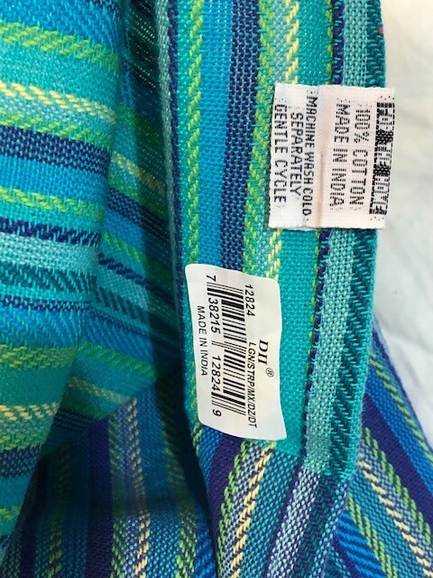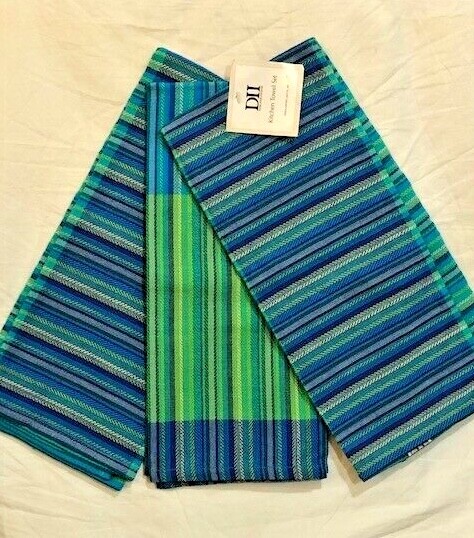 KITCHEN AND BAR TOWEL BLOW OUT! DESIGN IMPORTS COTTON KITCHEN TOWELS SET OF 3 STRIPED KITCHEN OR DISH TOWELS IN BLUES AND GREENS WITH A TOUCH OF A PALE YELLOW EACH TOWEL MEASURES 18" X 28" 100% COTTON NEW WITH TAGS PLEASE FORGIVE THE SHADOWS IN SOME OF THESE PHOTOS Feel free to email any questions