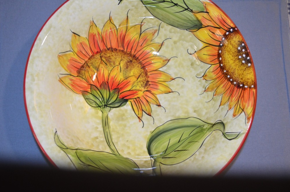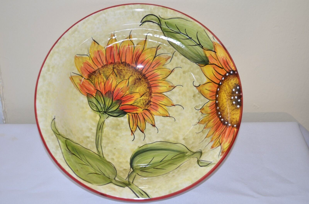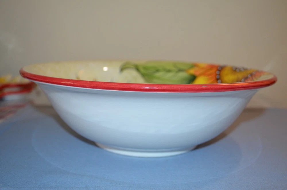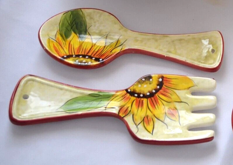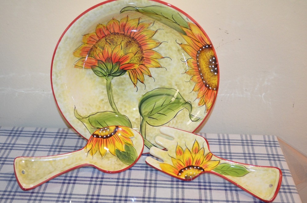 Italy, Ceramic, Glazed, Hand Painted, Serving Bowl 11" diameter, 3-1/2" deep, spoon rest 9" long, in very good condition...