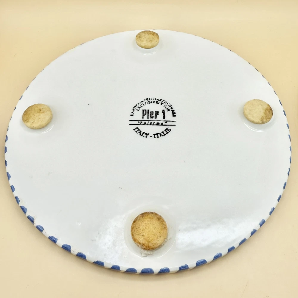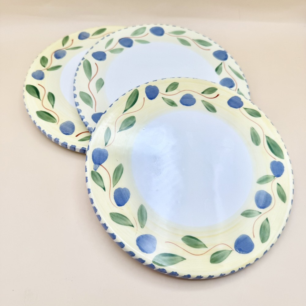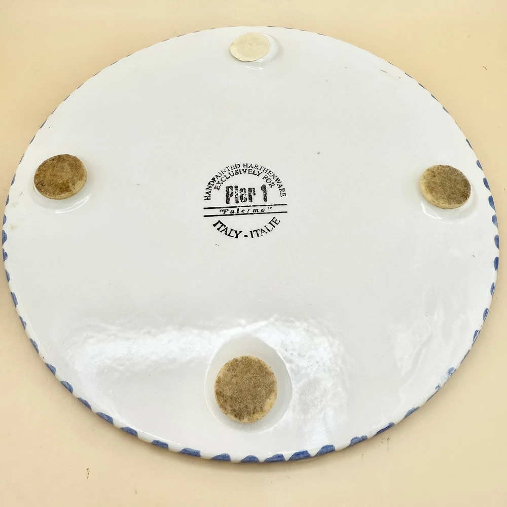 Brand: Pier 1 Imports Origin: Made in Italy Type: Ceramic Trivets (set of 3) Design: Blue olives, green leaves, yellow rim, striped border Dimensions: 7 3/4" diameter x 3/8" thick Condition: In good vintage condition. One is missing a felted foot pad and this one also has a very shallow chip/flake on it's edge. PLEASE SEE PHOTOS FOR DETAILS :) Dear Customer, t hank you for visiting! I strive to be very particular with my listings and many of the items in my inventory are vintage. With that often comes signs of wear or use relative to the item's age. Please see condition description and please do message me if you have any questions about the item you'd like to purchase. I ship from Connecticut on the next business day and depending on your location, this typically takes 2-5 business days. If you'd like to pay for upgraded shipping you may choose that option at check-out. Thank you for choosing my store! ~ Lauren