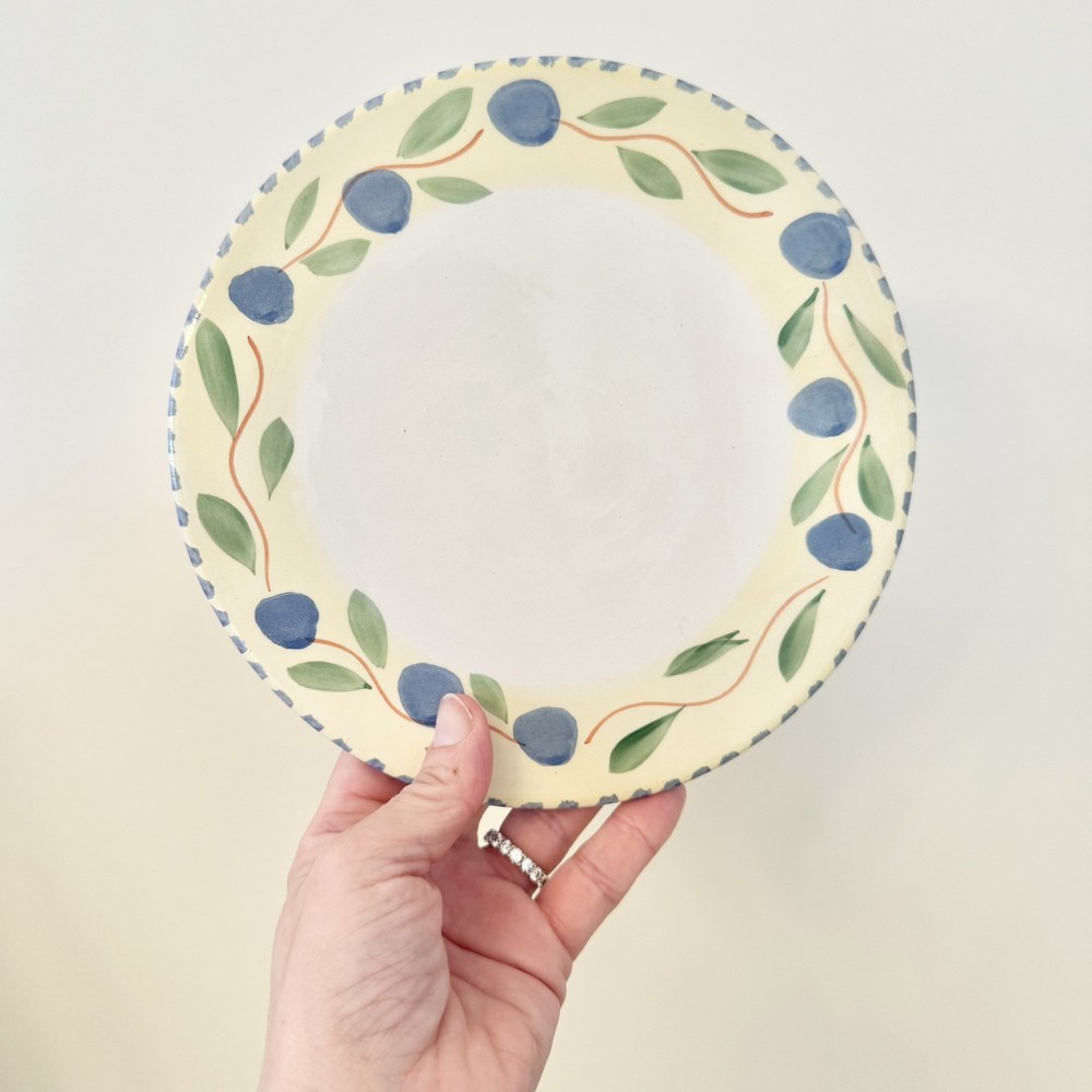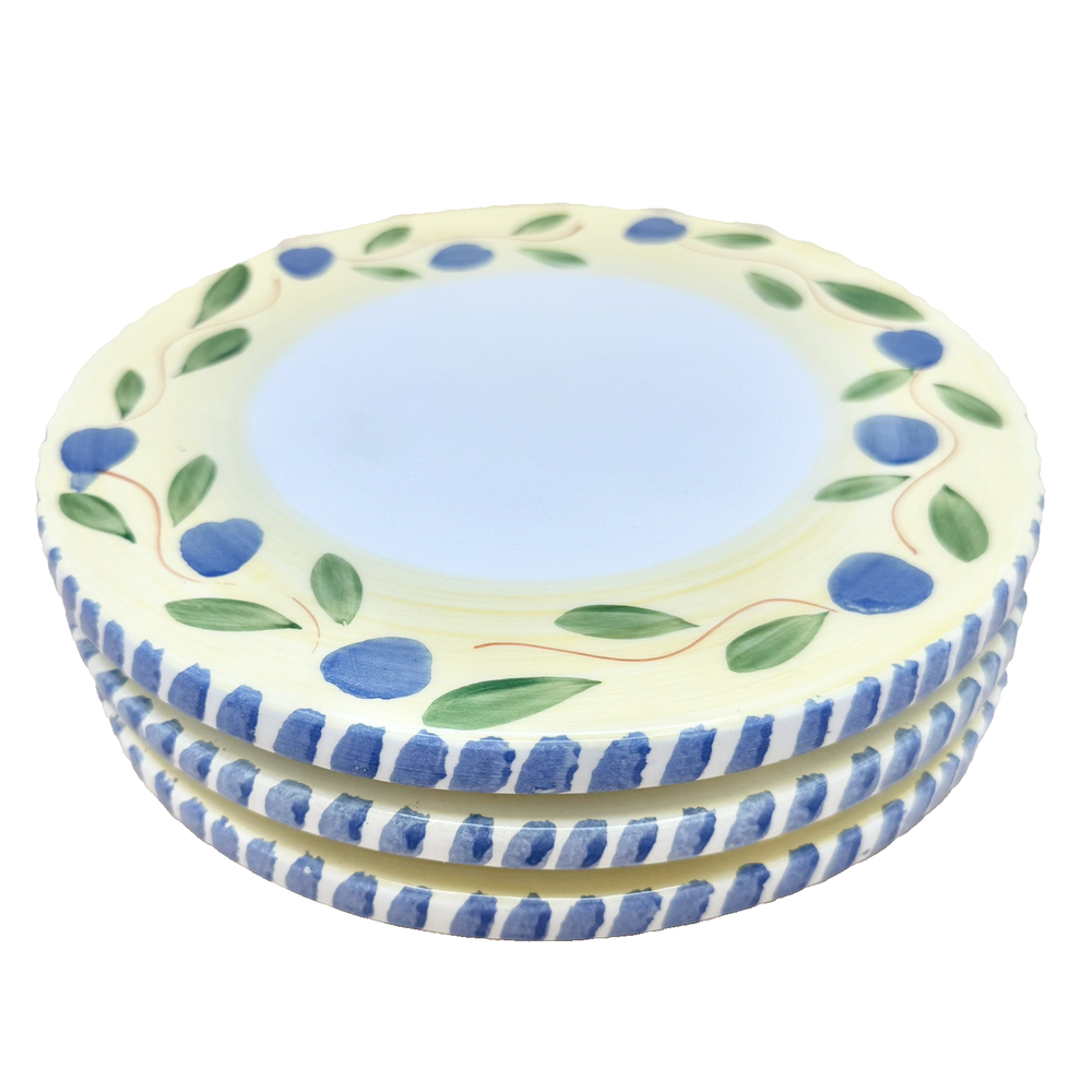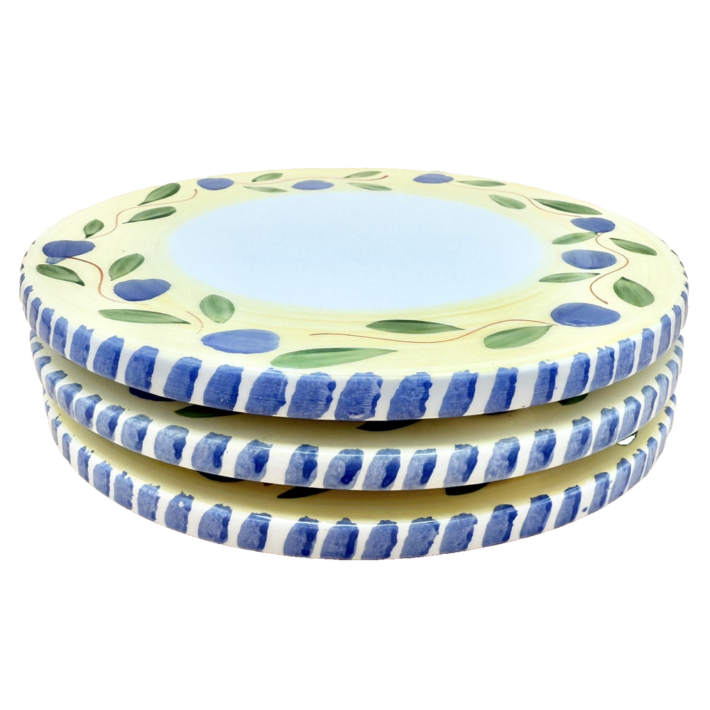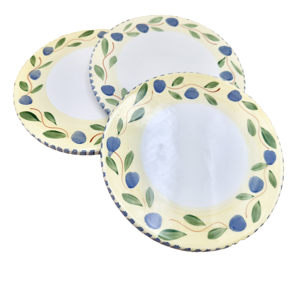 Brand: Pier 1 Imports Origin: Made in Italy Type: Ceramic Trivets (set of 3) Design: Blue olives, green leaves, yellow rim, striped border Dimensions: 7 3/4" diameter x 3/8" thick Condition: In good vintage condition. One is missing a felted foot pad and this one also has a very shallow chip/flake on it's edge. PLEASE SEE PHOTOS FOR DETAILS :) Dear Customer, t hank you for visiting! I strive to be very particular with my listings and many of the items in my inventory are vintage. With that often comes signs of wear or use relative to the item's age. Please see condition description and please do message me if you have any questions about the item you'd like to purchase. I ship from Connecticut on the next business day and depending on your location, this typically takes 2-5 business days. If you'd like to pay for upgraded shipping you may choose that option at check-out. Thank you for choosing my store! ~ Lauren