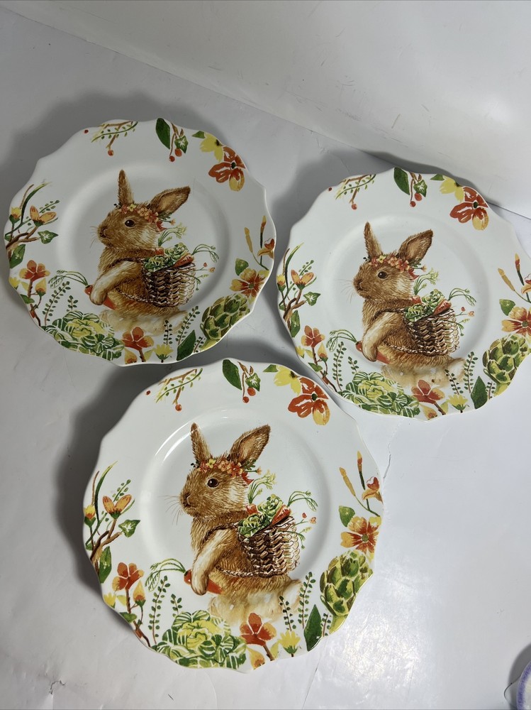 Set of 3 Pier 1 Imports Lilly Easter Bunny Rabbit Salad Plates Retired 8.5”. This price is for the full set of three retired Pier 1 plates. They are in perfect condition. If you have time check out the Easter section in my store. Feel free to ask questions. Thanks for looking! 🐣