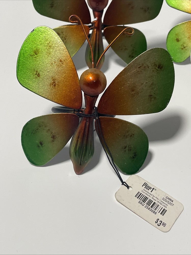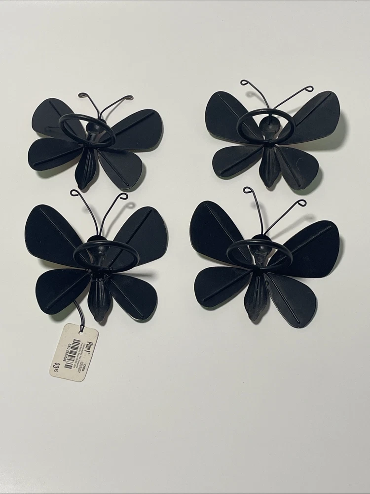 Set of 4 Approx 4x4 Add a touch of elegance to your dining table with this set of 4 butterfly napkin rings from Pier 1. These hand-painted metal rings feature a beautiful butterfly pattern and are perfect for any occasion. The multicolor design adds a pop of color to your table setting and the durable construction ensures they will last for years to come.