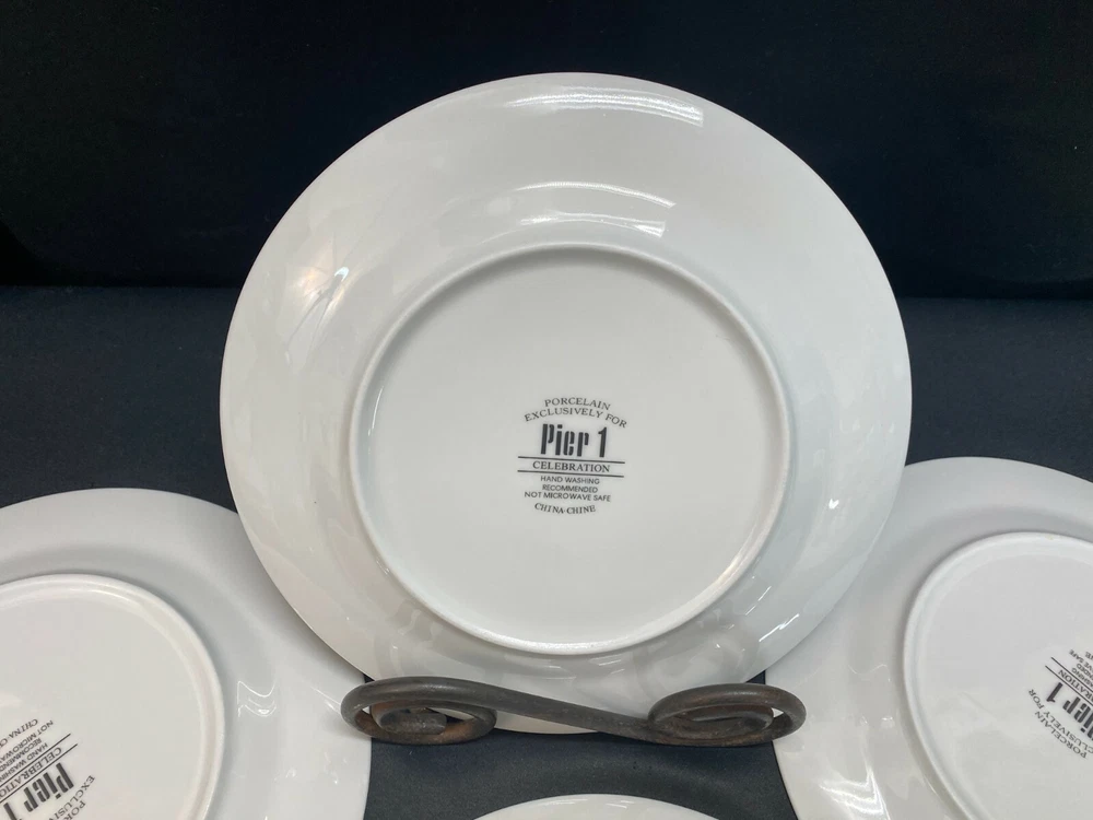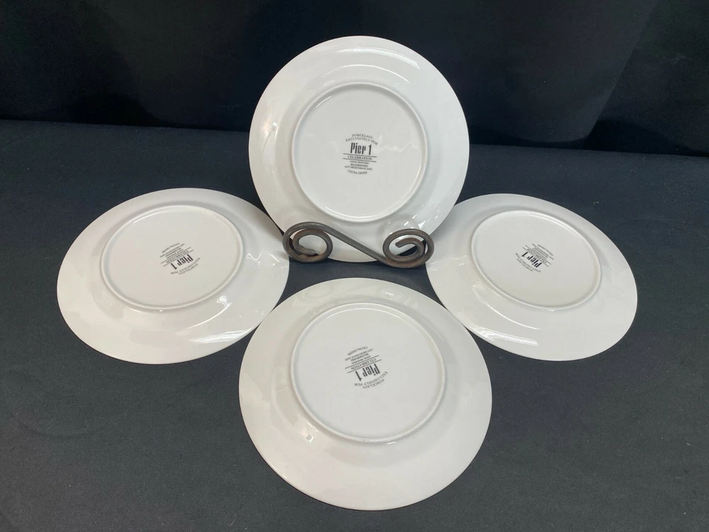 Set of 4 Designs (Colors) ~ Pier 1 "CELEBRATION" Accent Dessert Plate ~ 7 1/2" MULTIPLE SETS AVAILABLE / PRICED PER SET L & M Landing Store Terms We make every attempt to show our listings as they truly are. If the pictures or descriptions are not clear, please contact me. Positive Feedback is very important to us. We strive to always have repeat customers that have a great experience shopping at our store. If for any reason you are not completely satisfied with your purchase, please contact me and we can resolve the issue together. Buy Now – Payment is due immediately Auctions – Payment due within 3 Days We do offer combined shipping for multiple purchases. All overpaid shipping costs will be refunded at the time of shipping. We are a member of the Global Shipping Program in order to accommodate customers in other countries. SHIPPING TIME: Your item will be shipped the next business day after cleared payment has been received. You will receive shipping notification through eBay shipping or through PayPal shipping when your item is mailed. PLEASE be sure your shipping address is correct. Most of the items listed come from estate sales, auctions, garage sales, consignments and/or private sales. As such, I normally don't know the history of the item nor how it was stored.