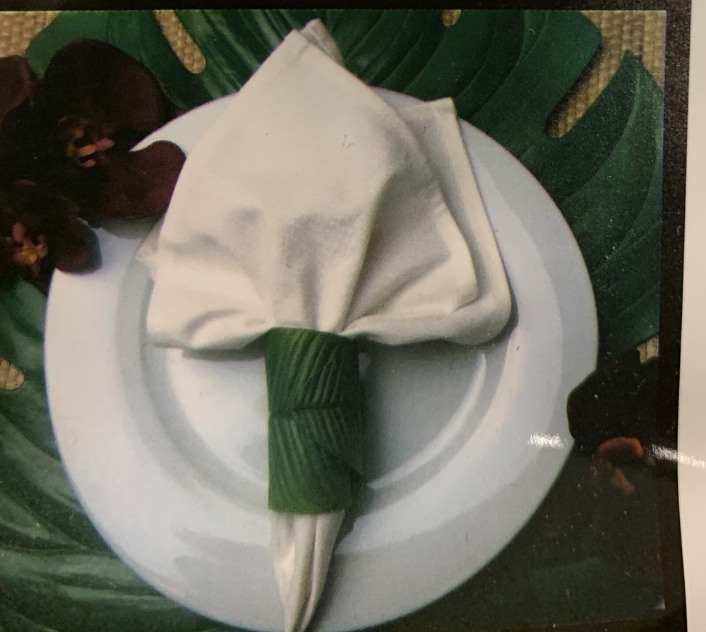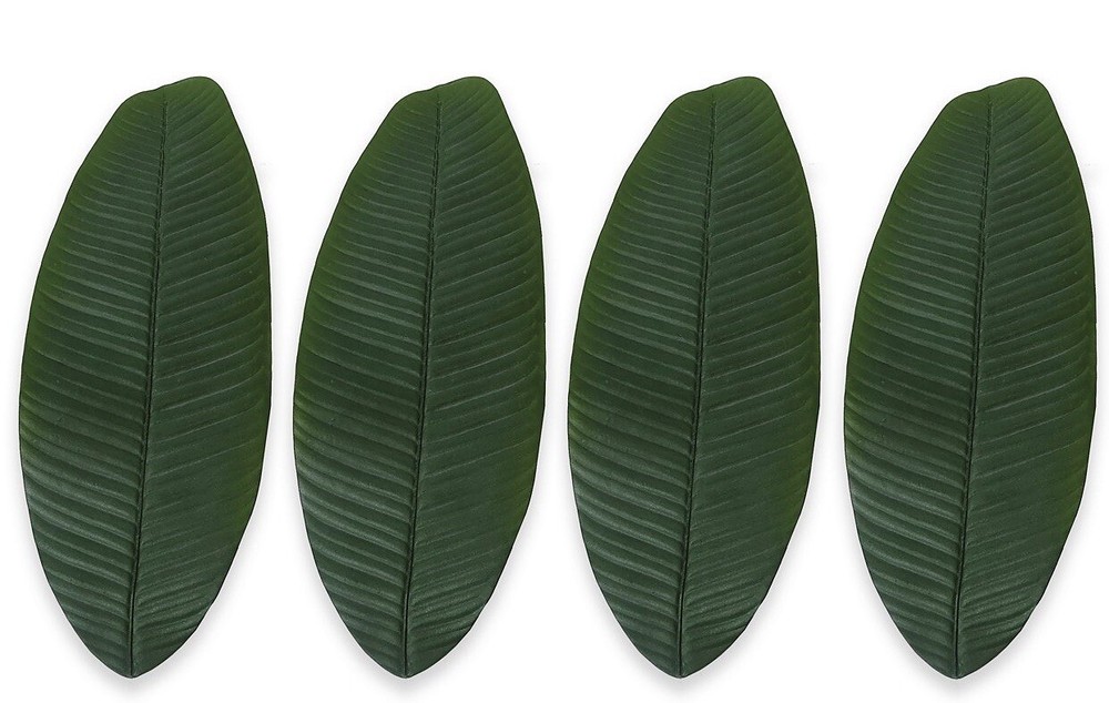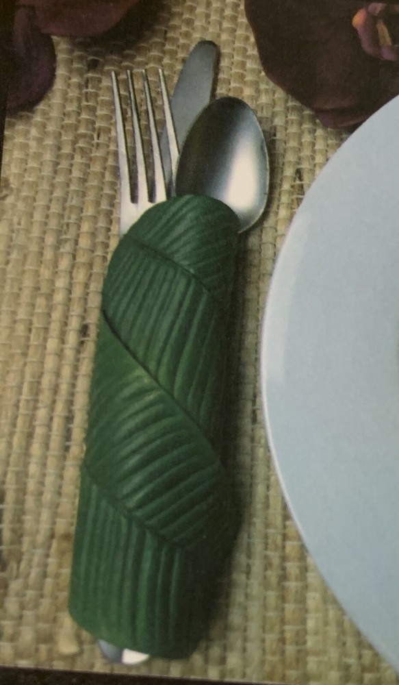 Set of 4, Indoor Outdoor Tropical Flatware Napkin Ring | Banana Leaf Add a tropical touch to your table setting with the Banana Leaf Napkin Rings from Design Imports. This versatile design can be rolled around a table napkin or unrolled flat to accommodate your flatware in a fresh, new way. Indoor / Outdoor napkin ring set Set of 4 Add a tropical, sunny vibe to any setting Use rolled or unrolled Unrolls to create different wraps & for easy storage Perfect for outdoor settings, picnics, dinner parties Care: wipe clean with damp cloth, hand wash Dimensions: 3.25" L x 1.6" W **Accessories not included