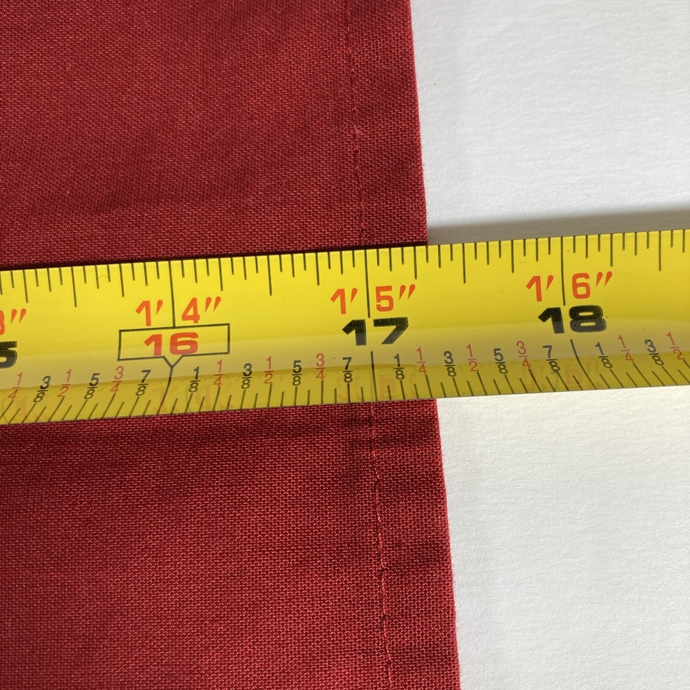 Napkins are approximately 17” x 17”. One has small spot as shown in pictures....