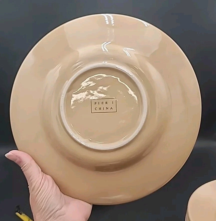 These four Pier 1 China Dinner plates are in great condition with no chips or cracks. This set is used and does have light utensil marks but minimal. Please see ALL pictures for more details and measurements on this Beautiful set.