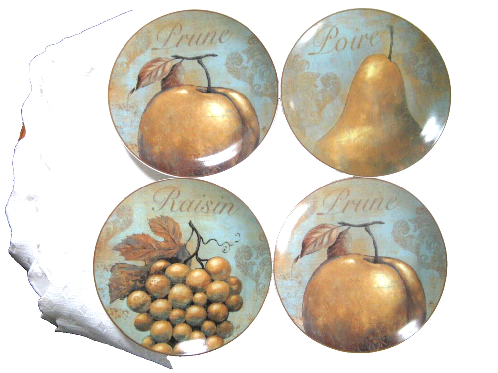 Up for sale is a set of 4 Pier 1 Imports fruit appetizer plates measuring 8 1/4". They are in gently used condition without chips, no design loss, and no utensil marks. Thanks for looking!